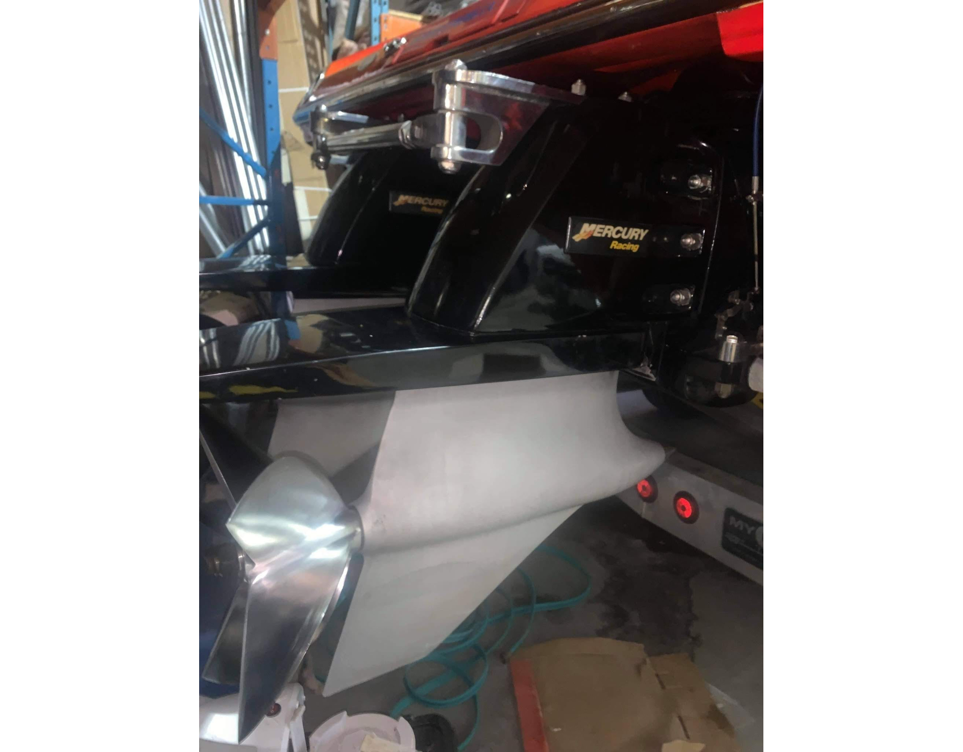 | 2001 42' Fountain Lightning staggered. Freshwater beauty ! Full Cover, Custom Paint job ,beautiful cabin and interior, Myco aluminum trailer w/ new tires and bearings. We are selling it without powertrain, no engines, drives or exhaust. It can go back together with stern drives or outboards. This boat is a definite eye catcher !!!