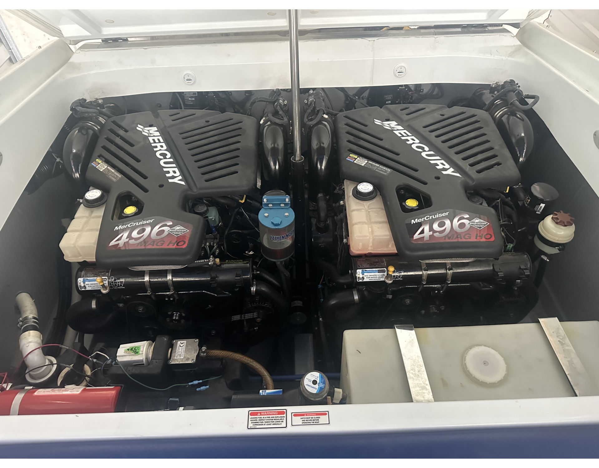 | 2006 Baja 35’ Outlaw powered by Mercury 496 Mag HOs and Bravo One X Drives. ONLY 300 hours since new! Babied since new. Only 13 hours over 4000 rpm. Fresh water only. Upgraded SST package. Upgraded Bimini top, ac/dc galley package, corsa quick and quiet plus thru exhaust, extended aluminum colored swim platform, upgraded clarion radio with amp and subwoofers.