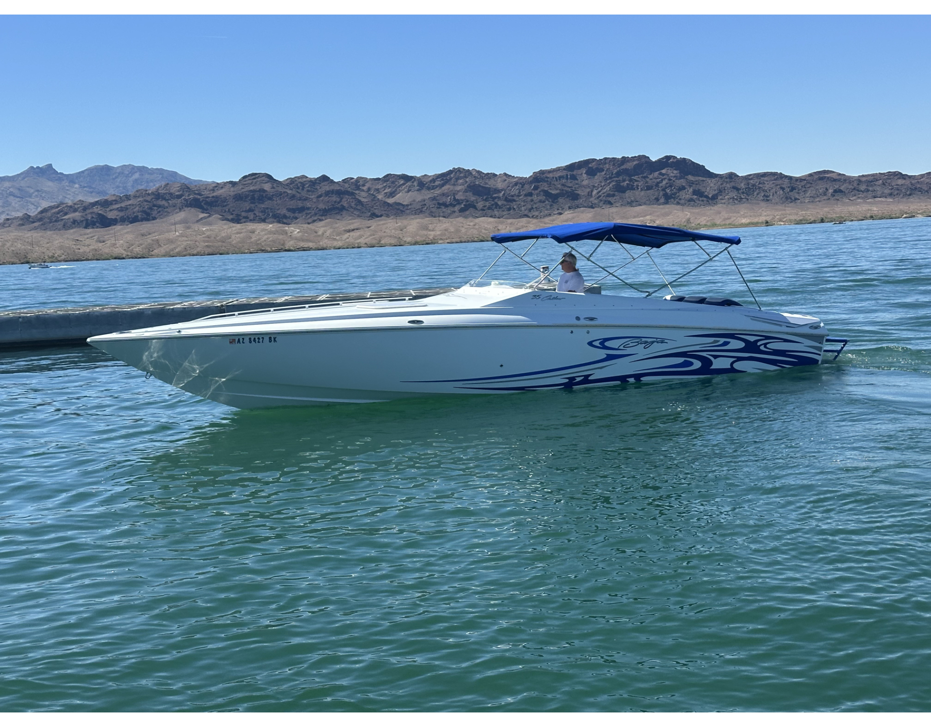 2006 Baja 35’ Outlaw powered by Mercury 496 Mag HOs and Bravo One X Drives. ONLY 300 hours since new! Babied since new. Only 13 hours over 4000 rpm. Fresh water only. Upgraded SST package. Upgraded Bimini top, ac/dc galley package, corsa quick and quiet plus thru exhaust, extended aluminum colored swim platform, upgraded clarion radio with amp and subwoofers.