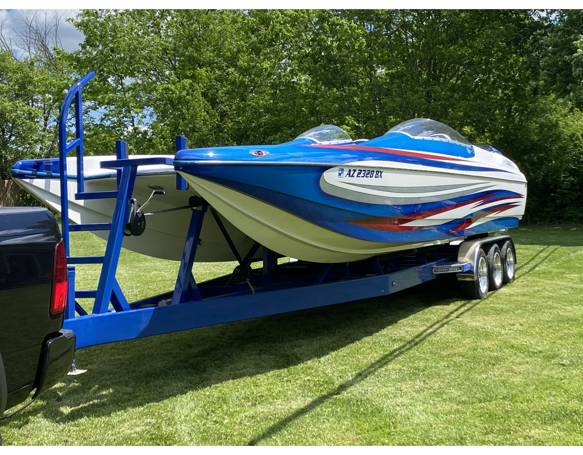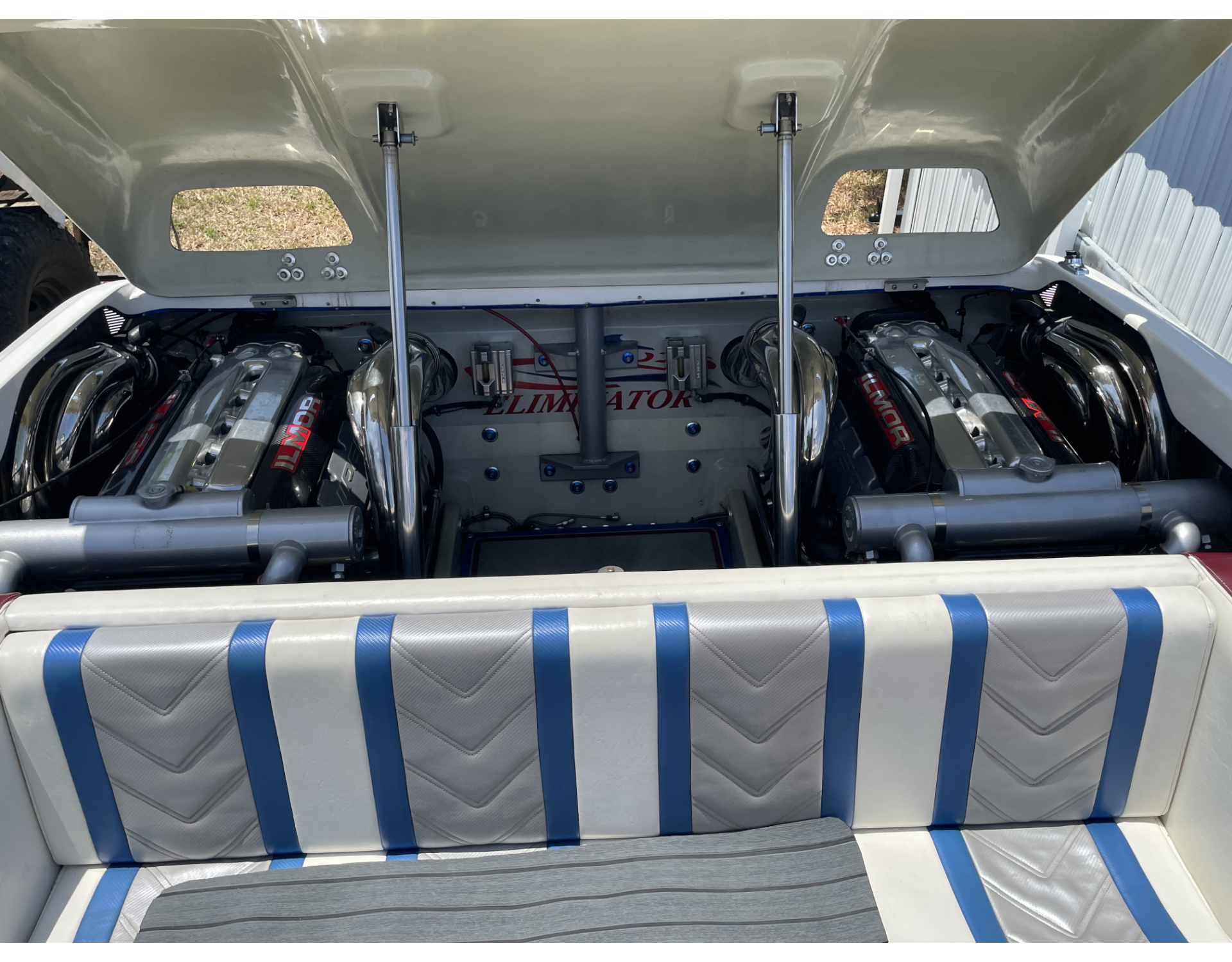 | 2007 Eliminator 30 Daytona ICC with twin Ilmor 710hp engines, 530 hours, Imco SC outdrives, Bravo 35p props, Imco Extension boxes, Imco full hydraulic steering, Tunnel Tab, Livorsi gauges, Livorsi controls, Marine Mat flooring, Garmin GPS, LED interior lighting, LED docking lights, LED underwater lighting, Fusion radio, SKAR audio speakers/amps, onboard charger and full cover. Boat cruises 50-60 MPH and runs 141 MPH on top end (with 37p props). Sits on an Extreme tri axle painted steel trailer with custom aluminum wheels, LED lighting and Hydrastar EOH disc brakes. Located in Cincinnati, OH asking $139,900