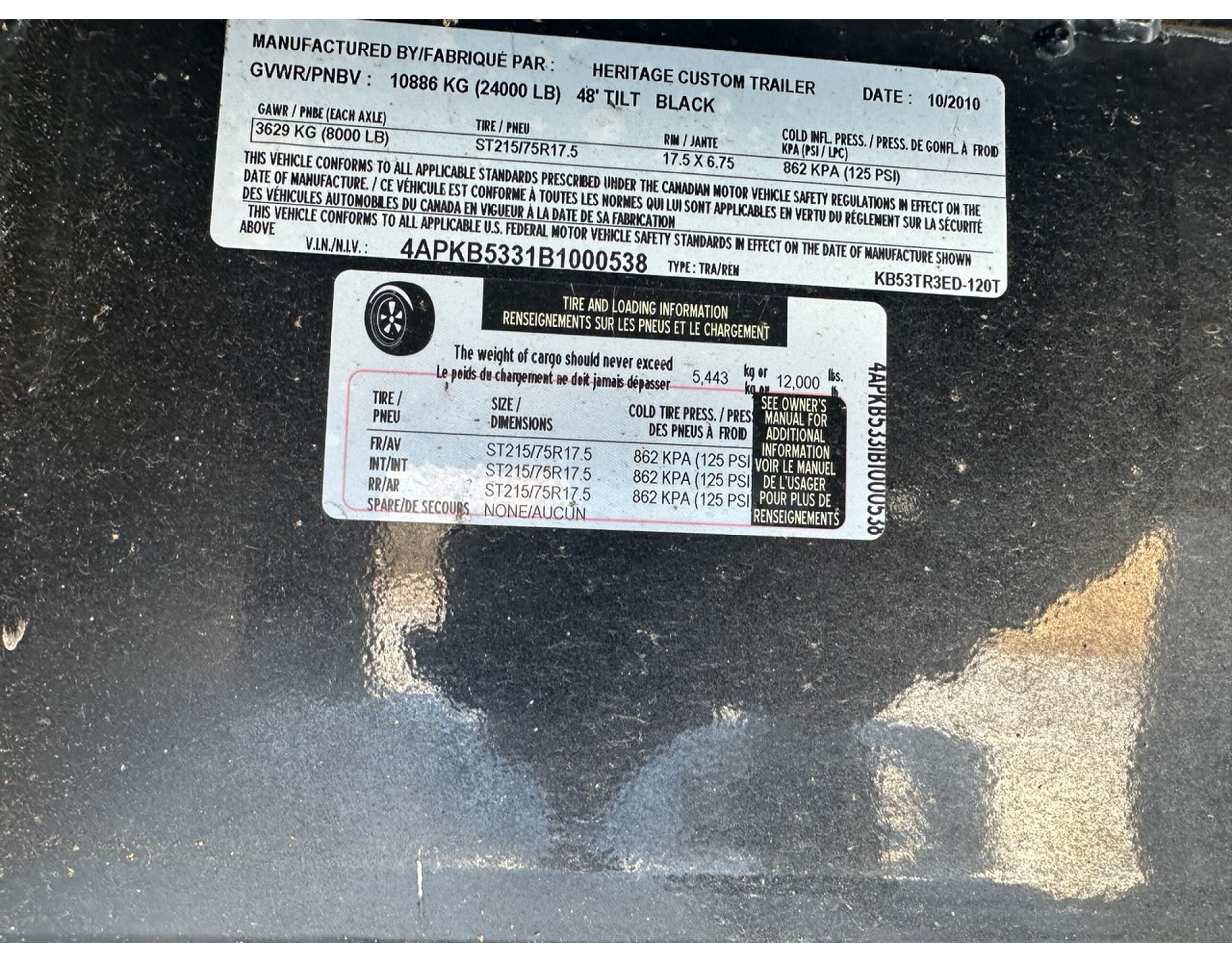 Heavy-duty 2011 Heritage tilt trailer purpose-built and