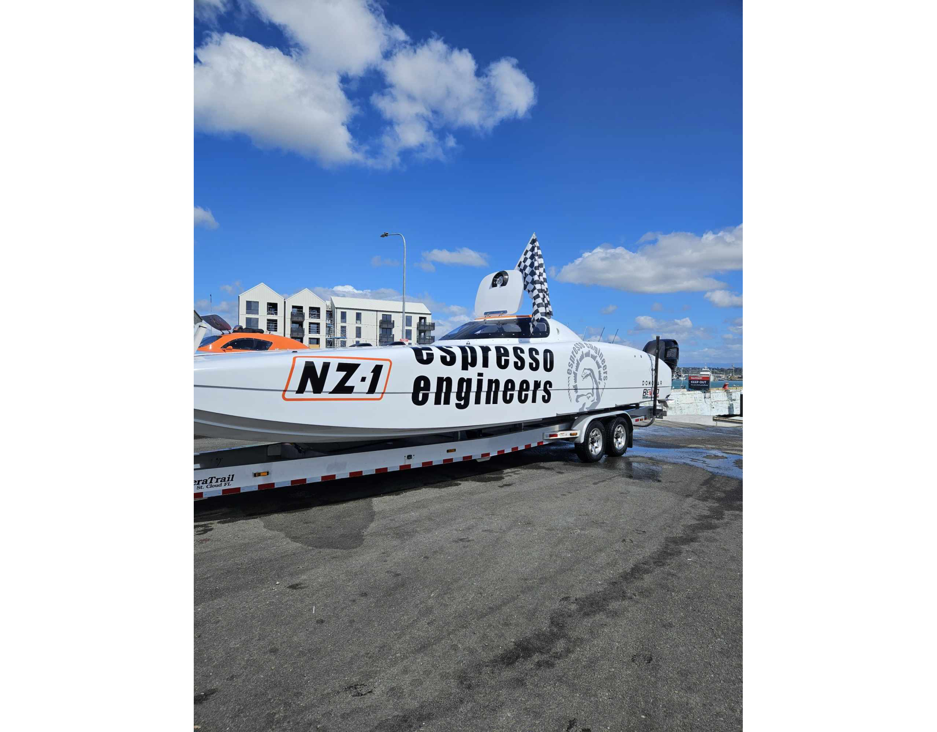Full Carbon Doug Wright race boat with only 79 hrs on the clock. powered by Mercury 300XS race engines. Meets all UIM standards ready to race.