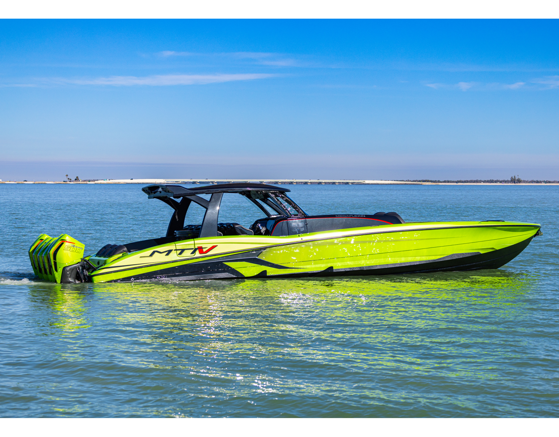 2022 MTI 50v Power by Quint Mercury Racing 500R’s with Less than 200hrs, Finished in a Lamborghini Pearl green exterior over a charcoal interior with black and green accents. This is a very heavily optioned boat. Some options include Carbon layup, Big JL audio system, 4 Garmin Screens, Oversized Billet black Pop-up Cleats, Bow and Stern Thrusters, Lumishore Color Changing Interior Light Package. Starlight Color Changing Headliner. Rear Console Refrigerator. Chill plate in Cooler Bucket. Tinted Clear Door panels on Cooler and Storage. Power Bow Table. Cabin Wardrobe. Full head and shower, Air conditioning cabin, Full bed, Flat screen TV, Seadek PVA Flooring, Upholstered Walls and Fully Painted Interior Cabinets. 2 Wireless Phone Chargers at Helm, Removable Swim ladder, Paint above Rub Rail. Fresh Water Wash / Flush System. This boat is available for immediate delivery! |