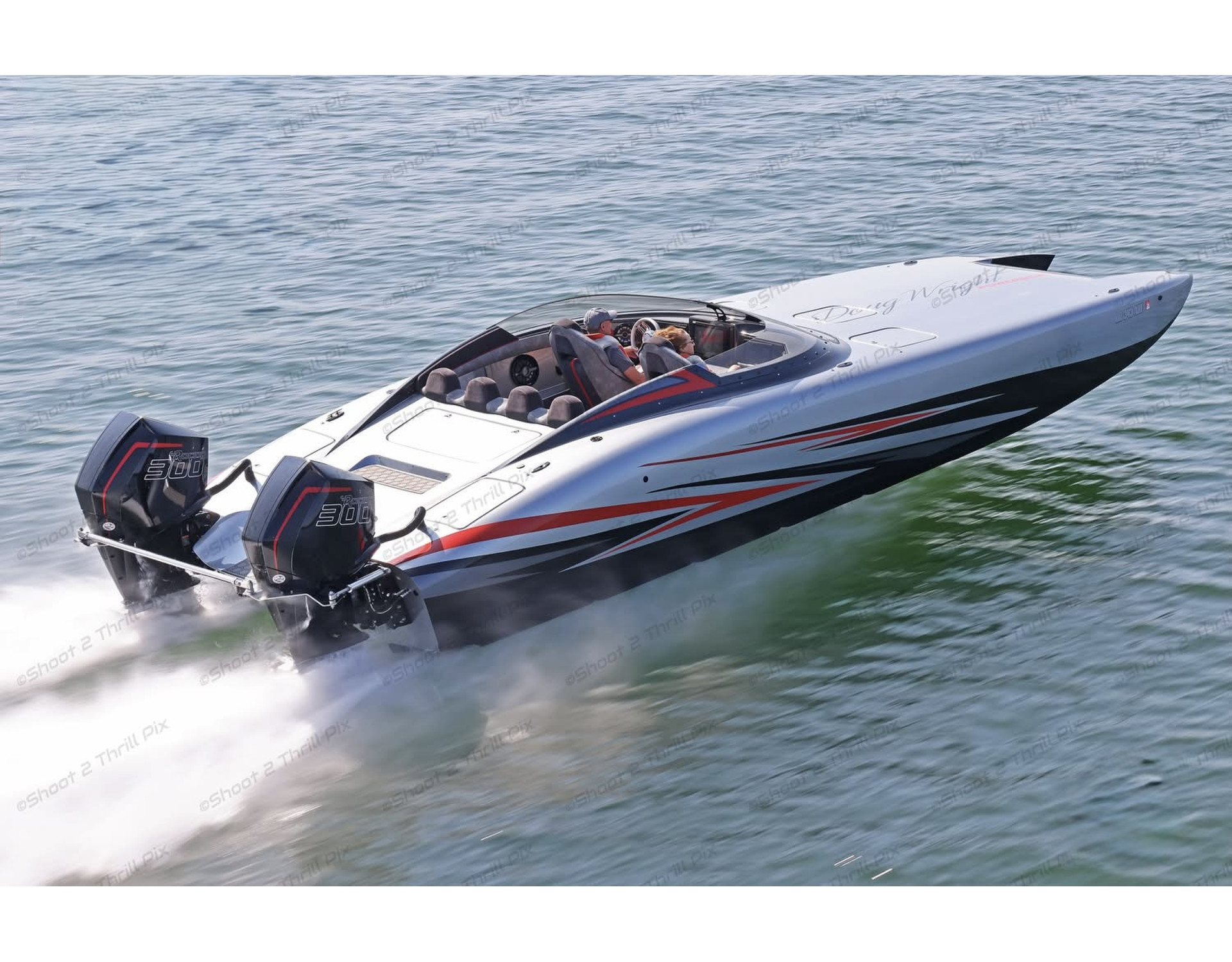 | 32 Doug Wright high-tech widebody is rigged right and ready to run. Powered by twin Mercury 300 R engines with only 145 hours, backed by a Mercury platinum extended warranty through June 26, 2028. Freshwater boat.