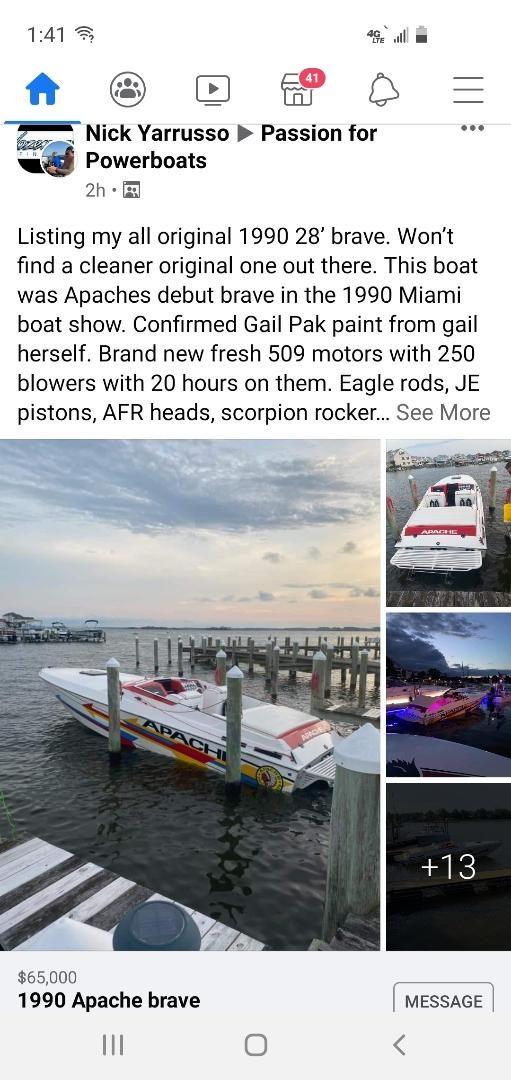 I just picked up an Apache 28 Brave with MPI 502’s. Can anyone give me details on the build? I see lots of 89-91 28’s out there but no 93’s. I can’t post a pic until I have 10 posts. A guy buy the handle of Steve H. Used to own this boat on this forum.