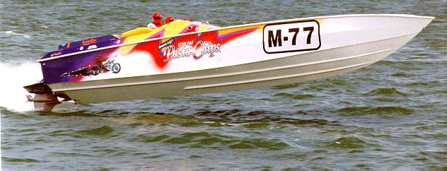 That looks like the 41 Geronimo. The reason I say that is because it has the Innovation Marine sticker on the engine hatch and a similar paint scheme. There was a picture of it in the engine shop at Innovation Marine.