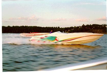 Here's my buddys 36' Warrior. Blown 572's/930hp each.