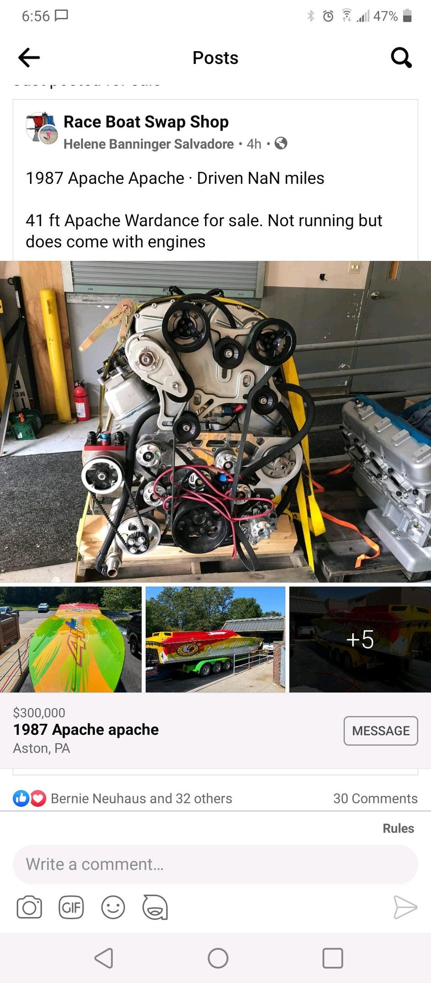 That is one of the boats that got me hooked on these things when I was a kid. I would ride my bike to the marina at Harbor Island in Ocean City to look at it on almost a daily basis. Jenny's Express was the only Apache there, but it was kept company by a few Cigarettes. The names Silverado and Dollar Bill come to mind. I always told my friends that I would own a boat like that one day and only one of them, Wild Bill (Purnell), believed me. He was hooked too and our other friends thought we were crazy. Now here we are a lot of years later, all grown up and both of us have not only been fortunate enough to own them, but we raced them as well. Together. Thank you Jenny's Express for giving me the dream! I can't tell you how awesome it would be to see her come home to Ocean City.