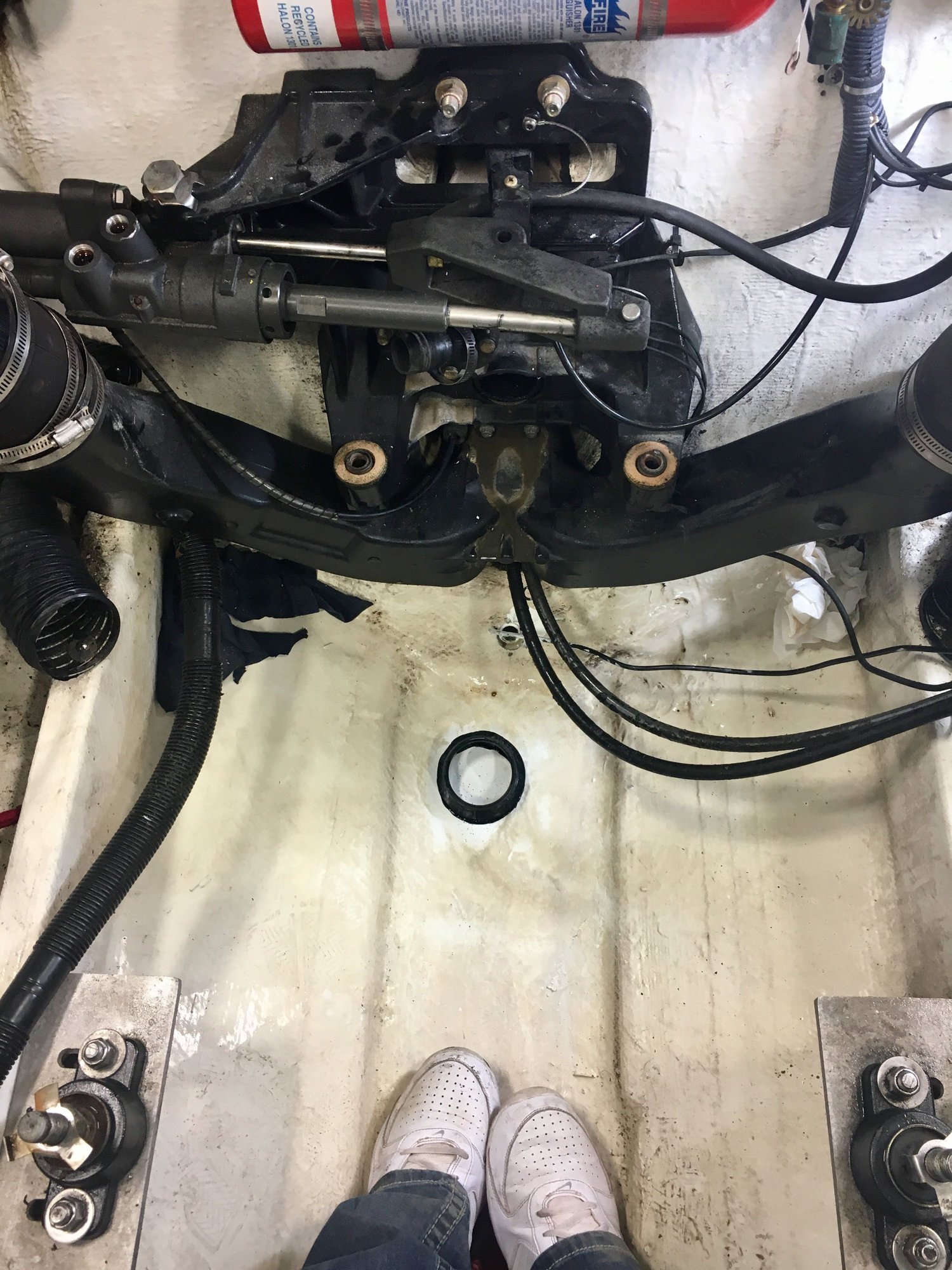 You can see where I sanded the bilge paint flat and installed the ring for the transducer to sit in