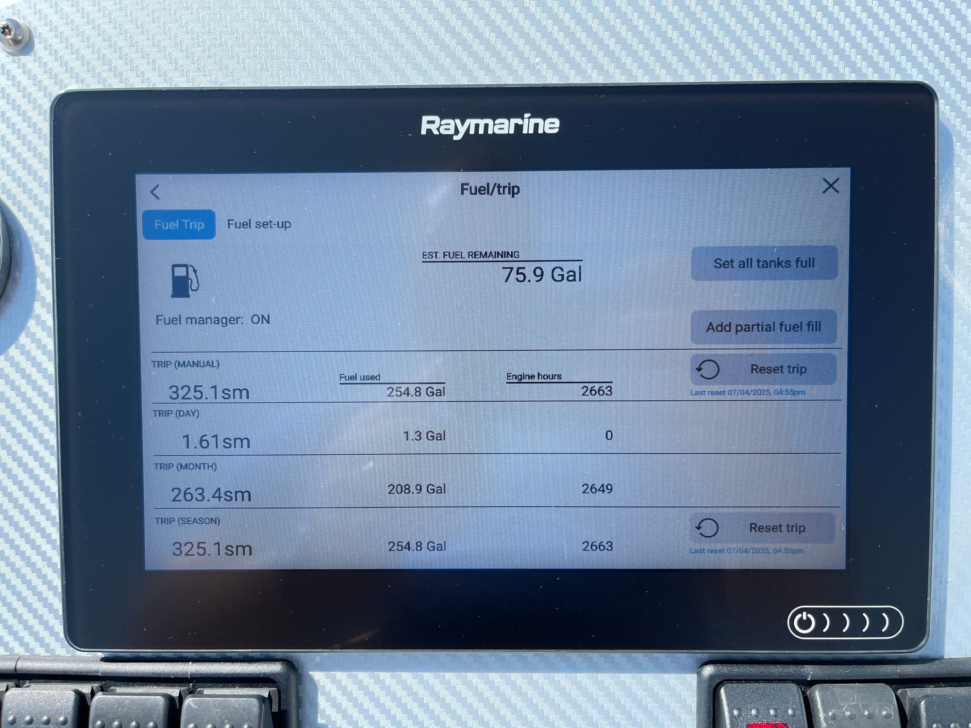 Fuel flow is estimated by the ECUs and then the Raymarine fuel manager takes that and subtracts it from what you tell it is in the tank. So, you set up the tank volume (mine’s 185, but I programmed it to 170 to have a buffer). Then every time you gas up, just click either set tank full or add partial fill. Been using it two seasons now, it’s surprisingly accurate given how basic the MEFI3 controller is.
