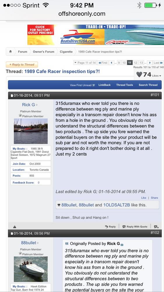 heck, check out Rbesola's thread on what he just did to his Myco trailer here in the Cig section. Rbesola isnt that much older than Phil. He's in his early 20's. Works his azz off. He bought an older top gun with 500's and TRS drives. Since he bought it, he has re-rigged the boat with SSM 4 drives, extension boxes, removed the engines, rebuild, added superchargers and some other goodies, custom hatch, lots of cool stuff. He took the boat to another level, running great speed numbers, and did it without the $hitty I know it all attitude.