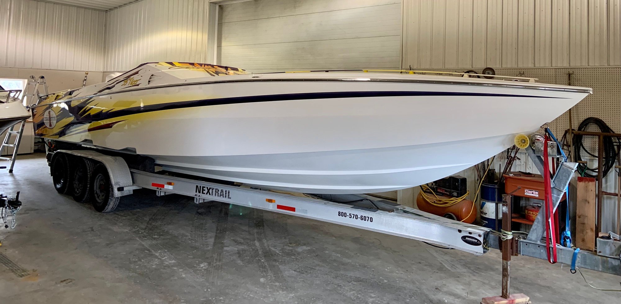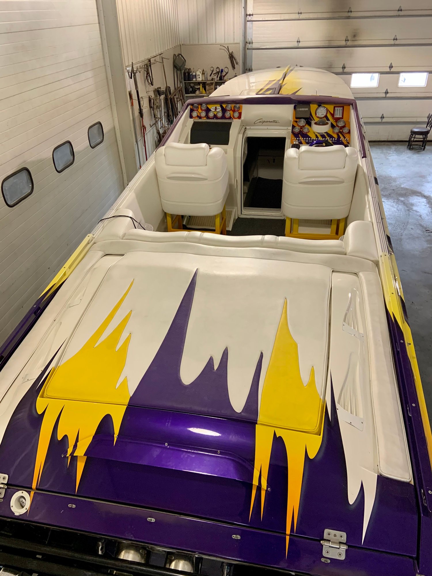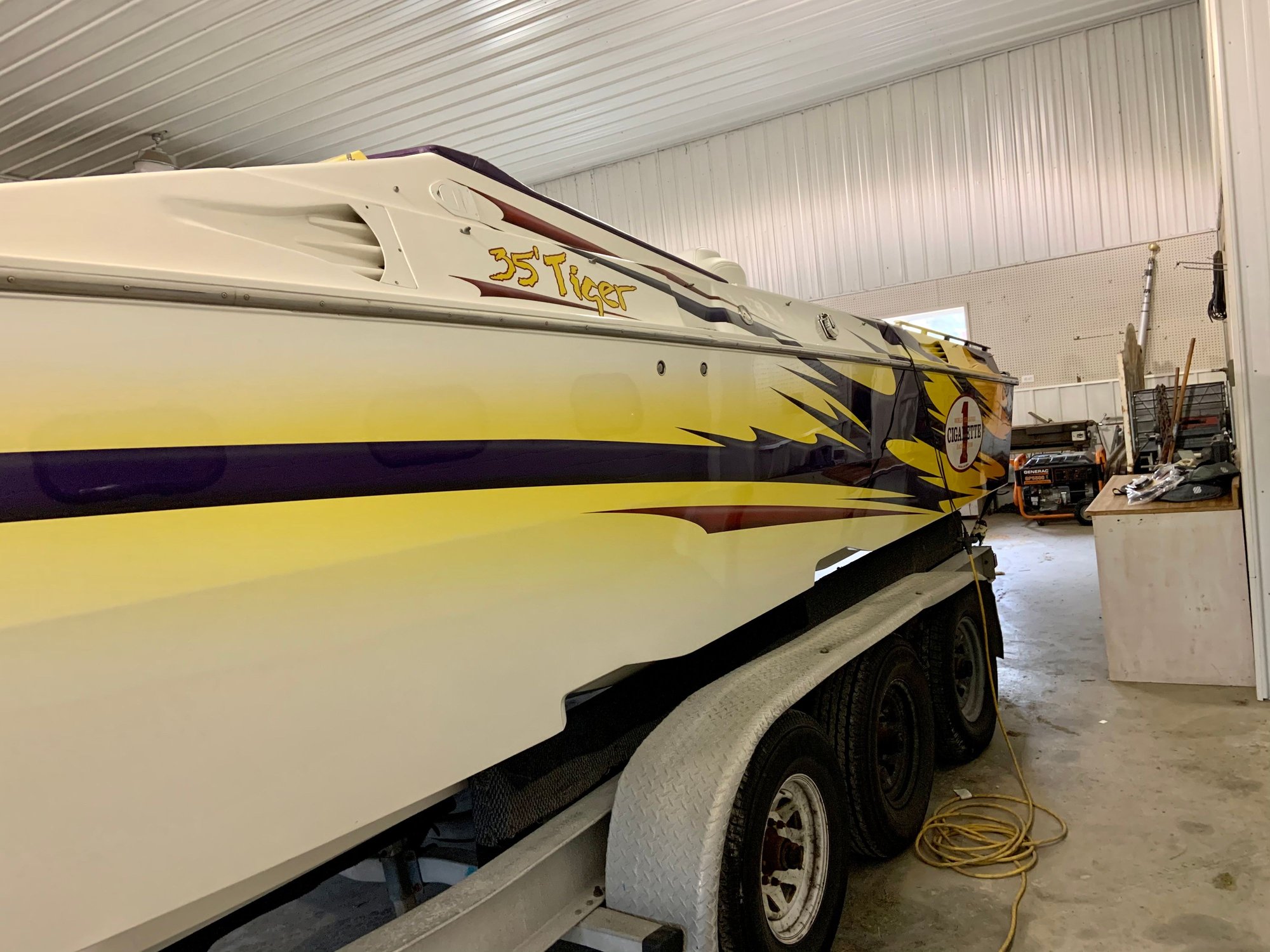I don’t mind the paint scheme at all but someone did a cheap shotty job repainting the deck and it looks bad. They put “Tiger” on the side for some dumb ass reason and clear coated over it, which is another reason why it needs paint. Looking forward to shaping it up and it’s my first Cigarette, have always wanted one