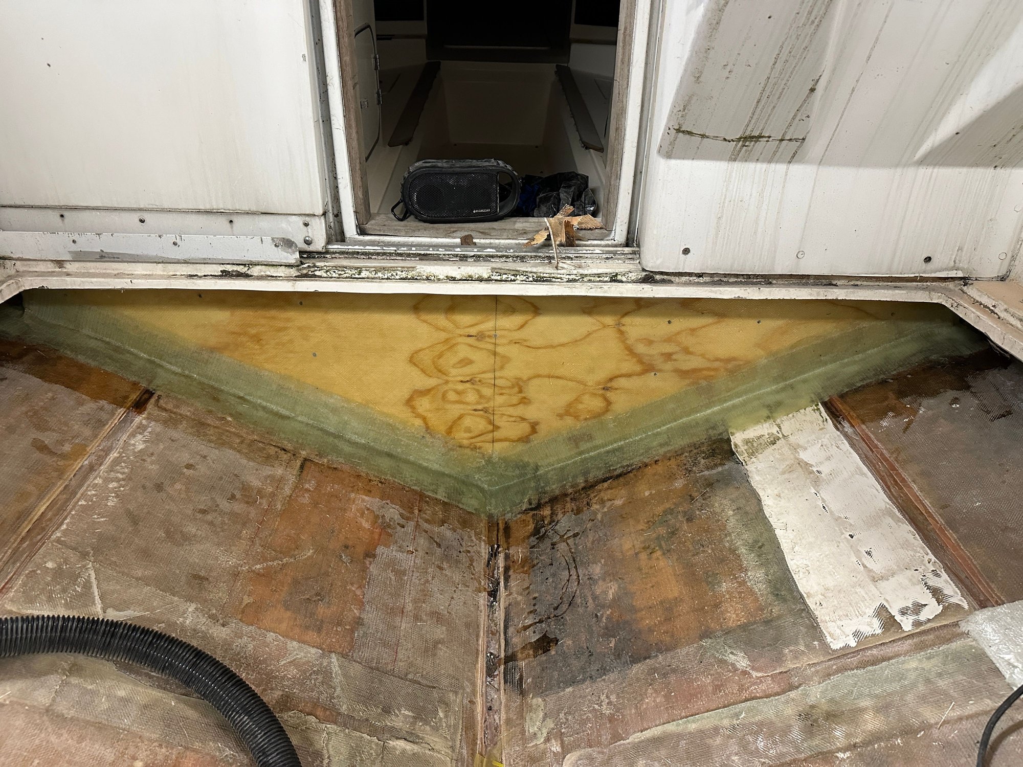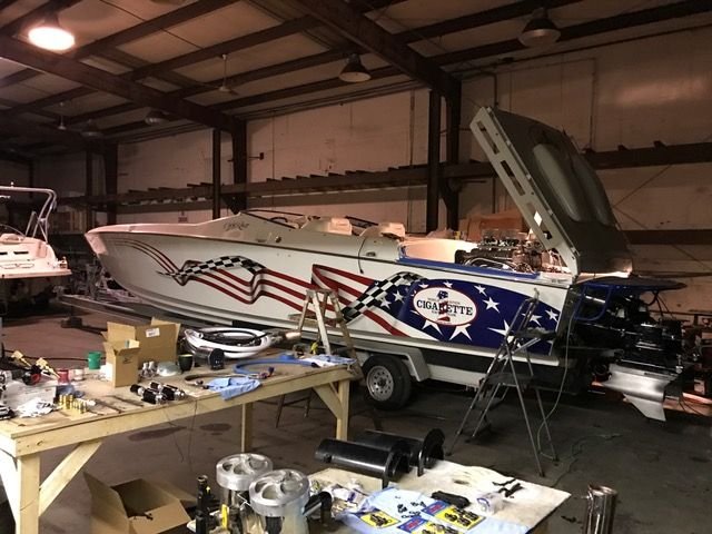 I ended up with the Cafe in October! Eric(Division1) happened to be at a buddies shop with his TG when I stopped in and said something about his buddy selling a cafe and a scarab. My friend bought the Scarab and I got this. The scarab needs way more than the cafe I’d say but it’s much cleaner to work with.. It was purchased with brand new stringers and bulkheads throughout the boat. We just did the transom and engine stringers on it as well.