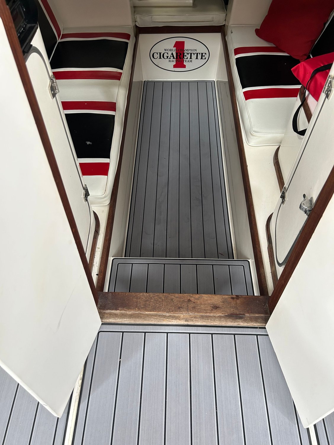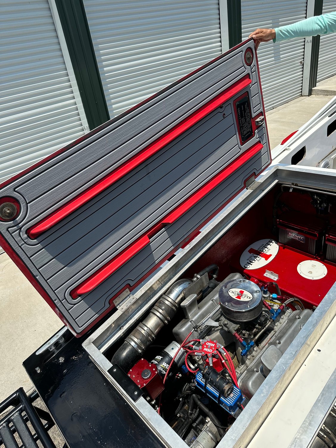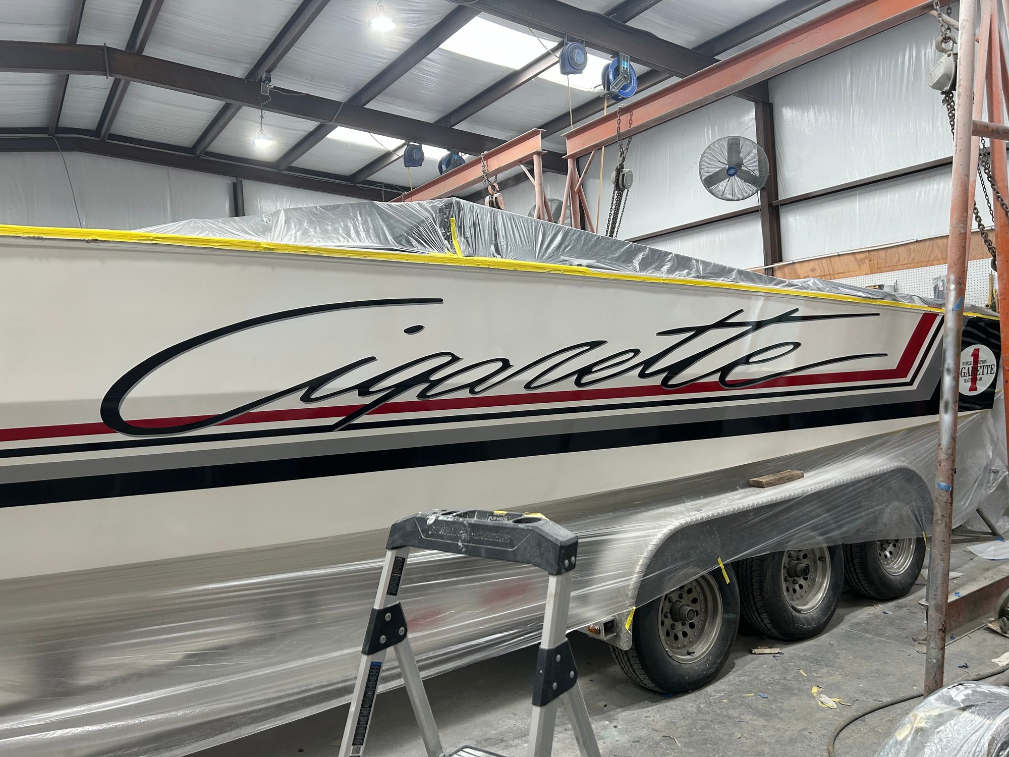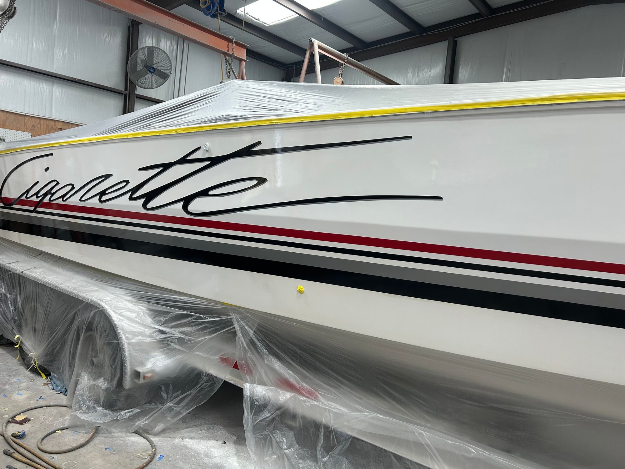 Here are a couple of pics.... Had the stickers remove and logos painted on and installed SeaDeck.