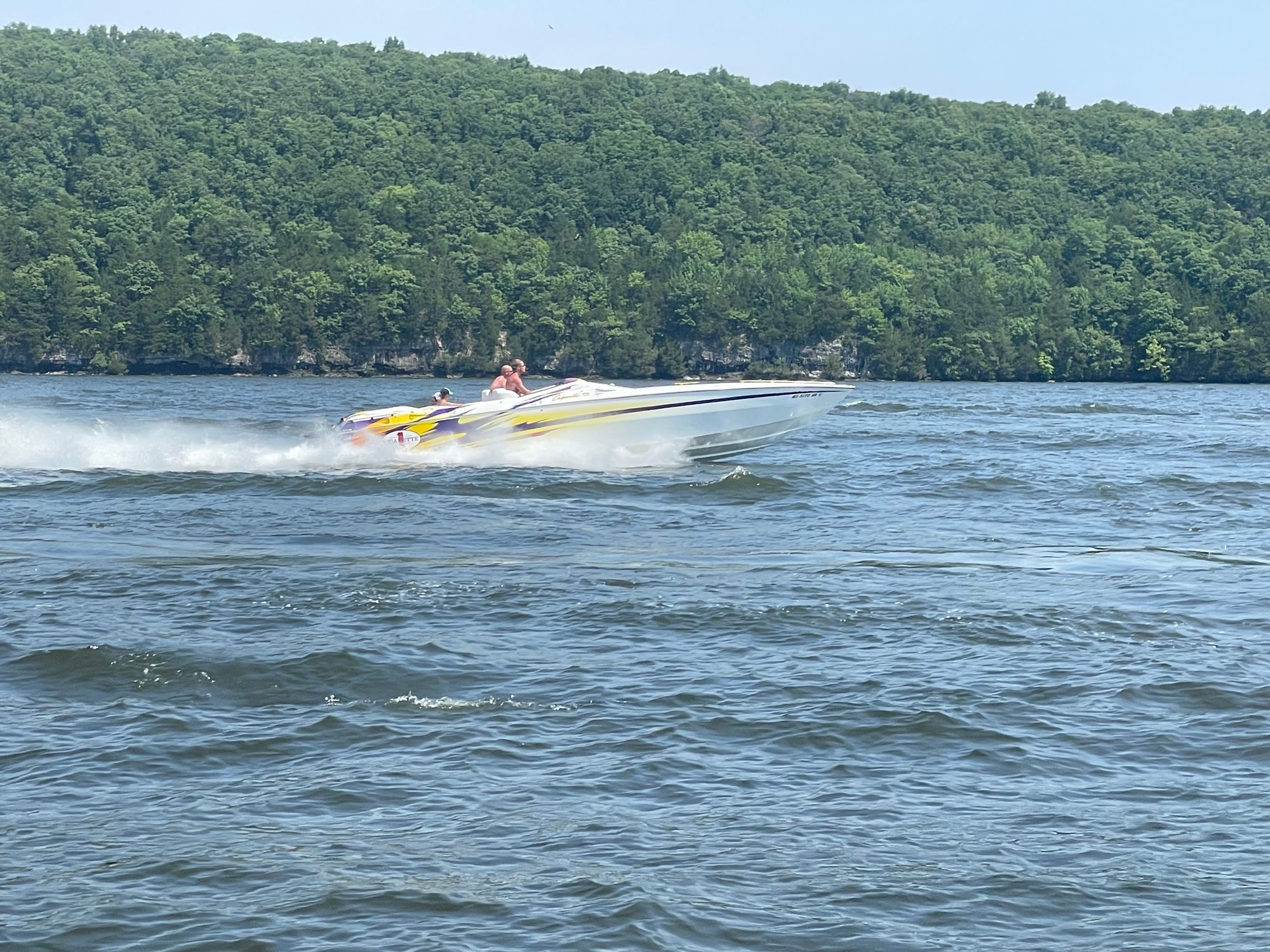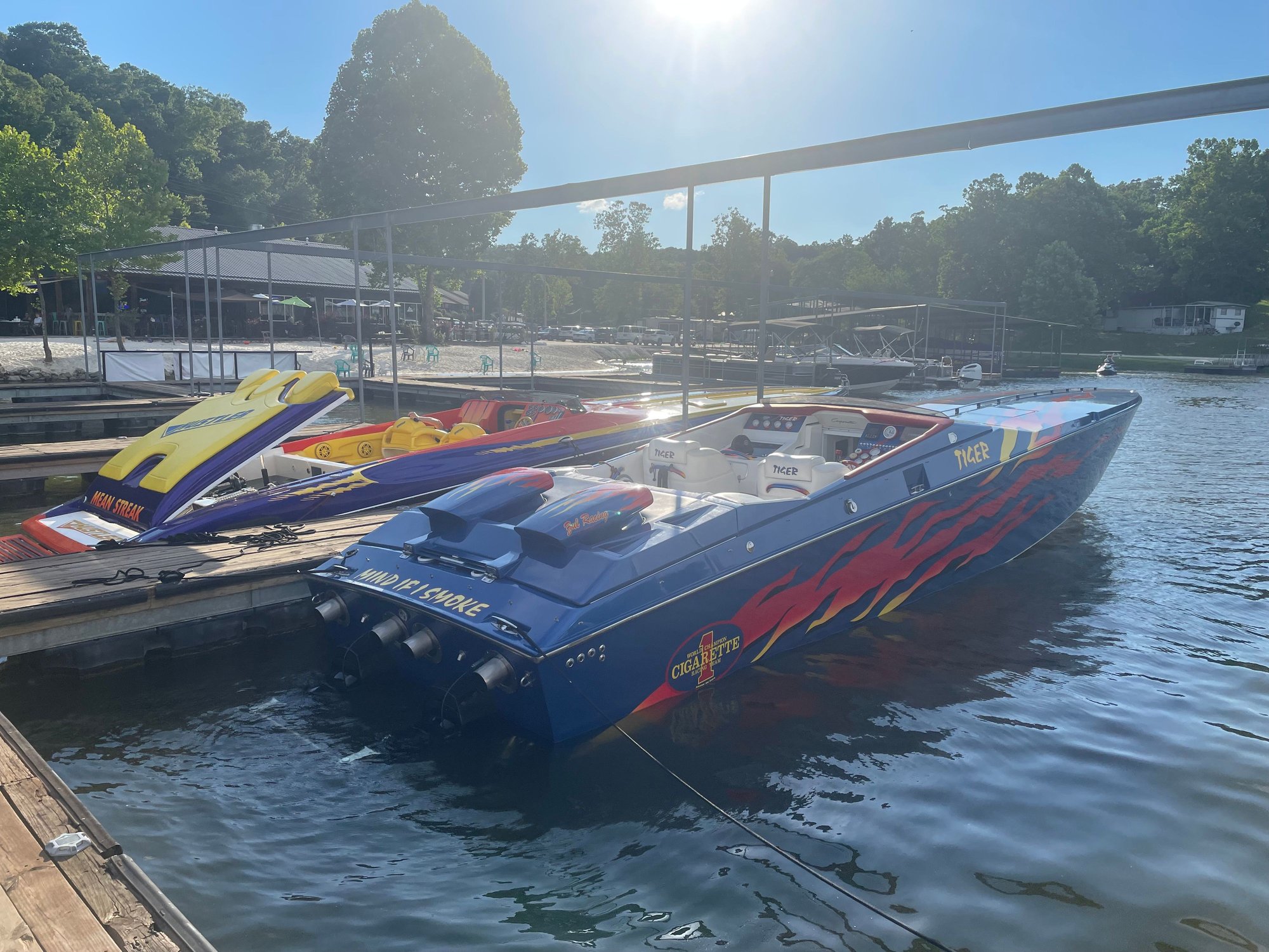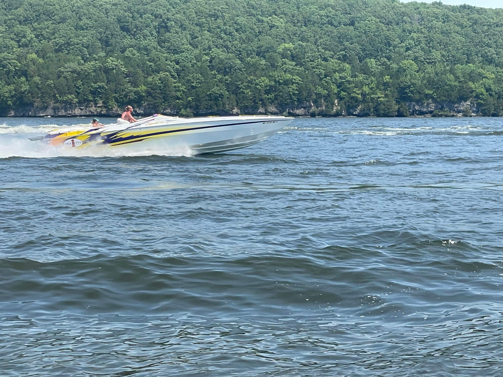 1st pic on post #116. Saw you guys sitting out there in the channel for a few minutes and was concerned about someone having trouble. I was just letting the lift down to go check on what was going on with a bag full of tools etc. Then heard one of them fire up and you were back on your way. Glad nothing was wrong. It was a good showing of the Cig's all weekend long. Enjoyed the view (and sound) from my dock.
