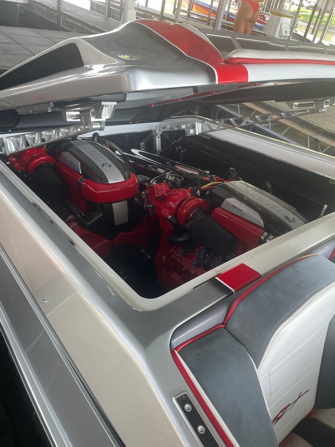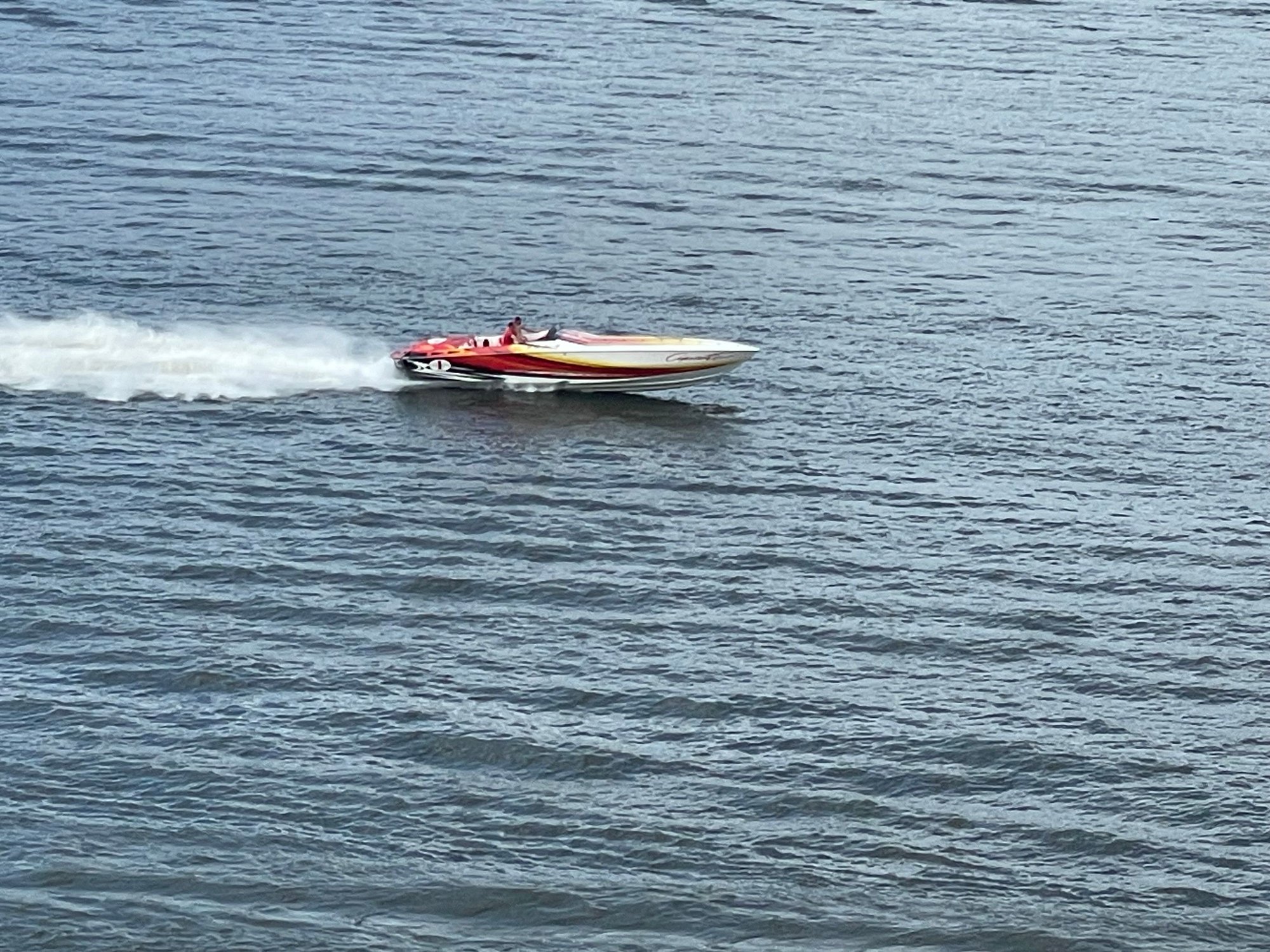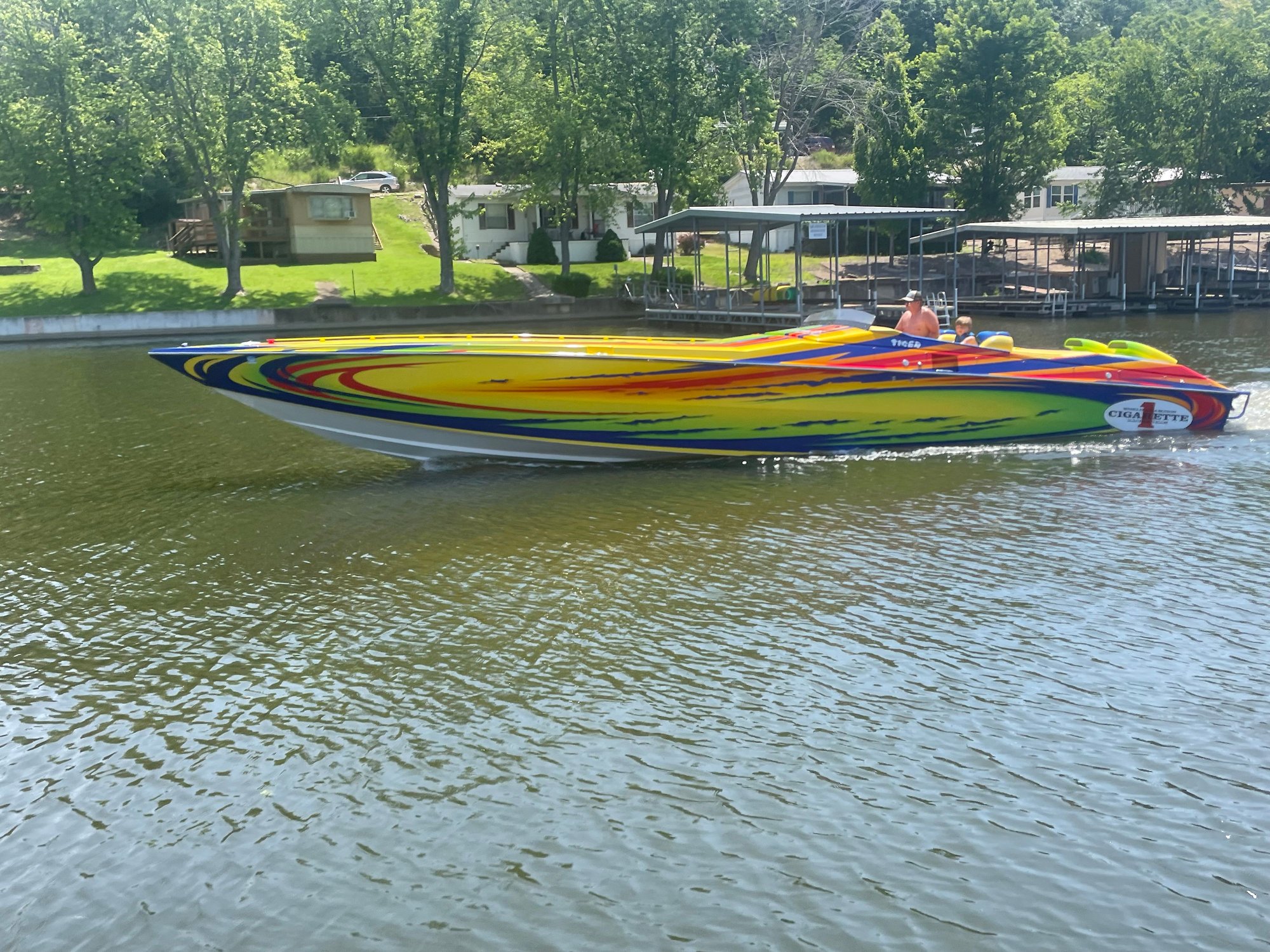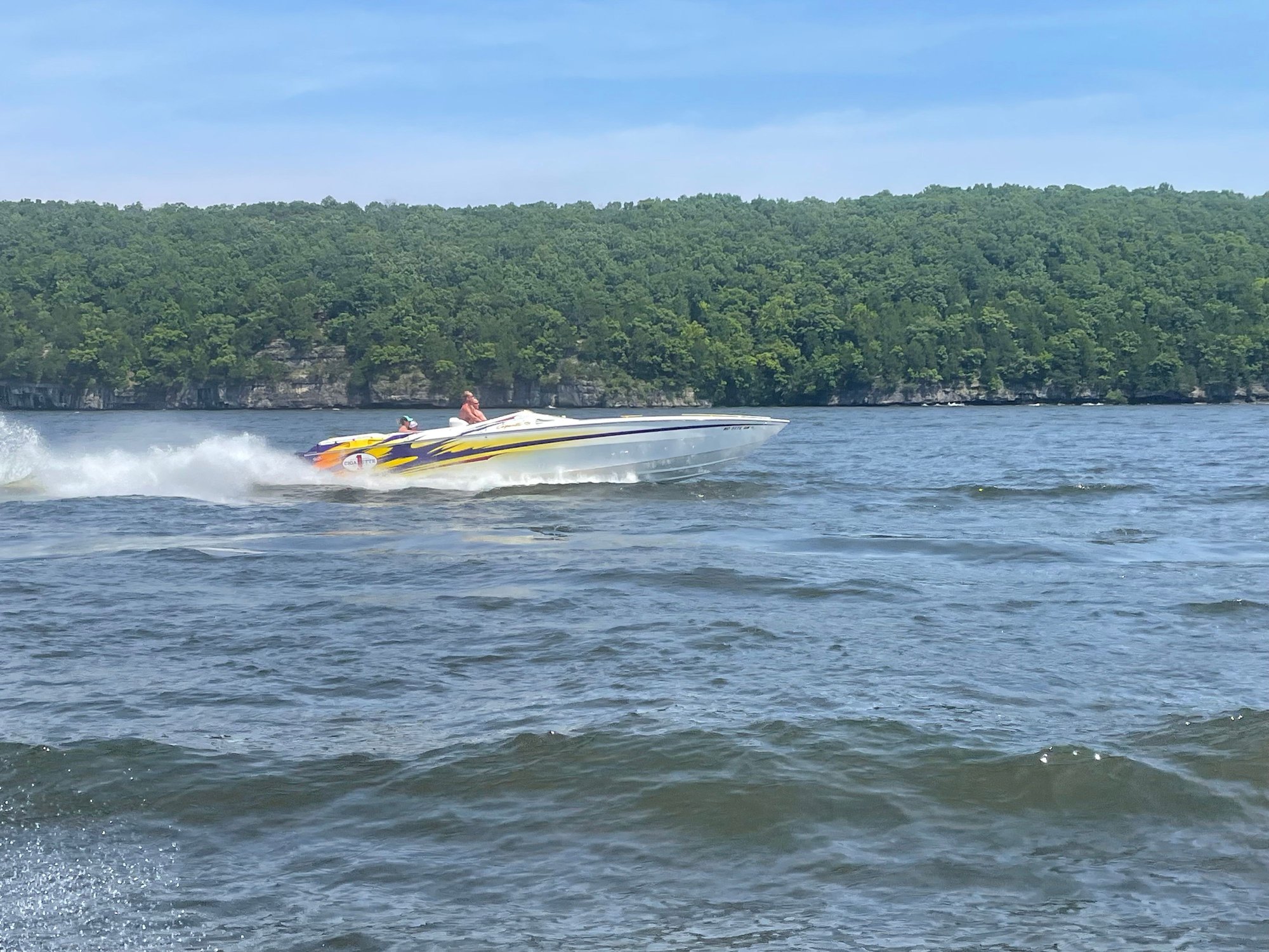 1st pic on post #116. Saw you guys sitting out there in the channel for a few minutes and was concerned about someone having trouble. I was just letting the lift down to go check on what was going on with a bag full of tools etc. Then heard one of them fire up and you were back on your way. Glad nothing was wrong. It was a good showing of the Cig's all weekend long. Enjoyed the view (and sound) from my dock.