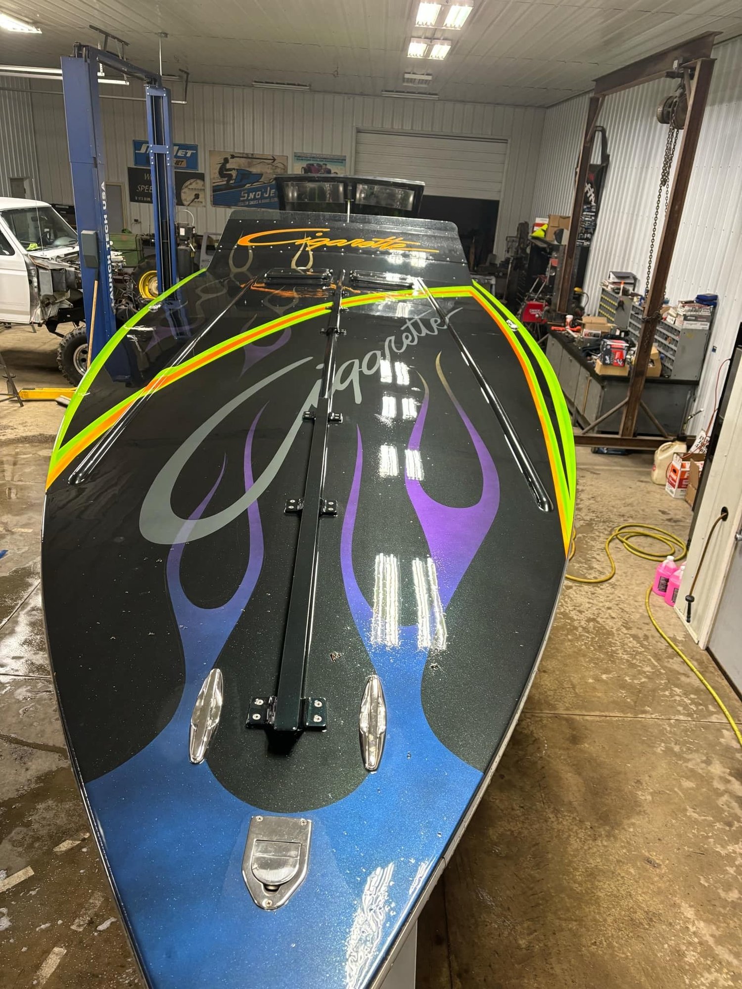 Hey guys, so I put a small deposit on a 1984 38 Flatdeck named “over compensated”. Was wondering if anyone had some insight on the history of this boat. Apparently the boat was from Texas at one point and went up to Ohio. The gentleman who restored the boat passed years ago and sat after the restoration. Seems to have put a ton of time and money into paint and up dates. Motors are un known but run. Have 871 blowers and super chillers. Believe the drives are #2s or 3s with sportmaster lowers, borg transmissions. It’s a dream boat of mine for what I think is a fair price. Apparently Kevlar hull too. Haven’t seen it in person yet but pictures/videos make the boat look amazing for its age. Will post some now