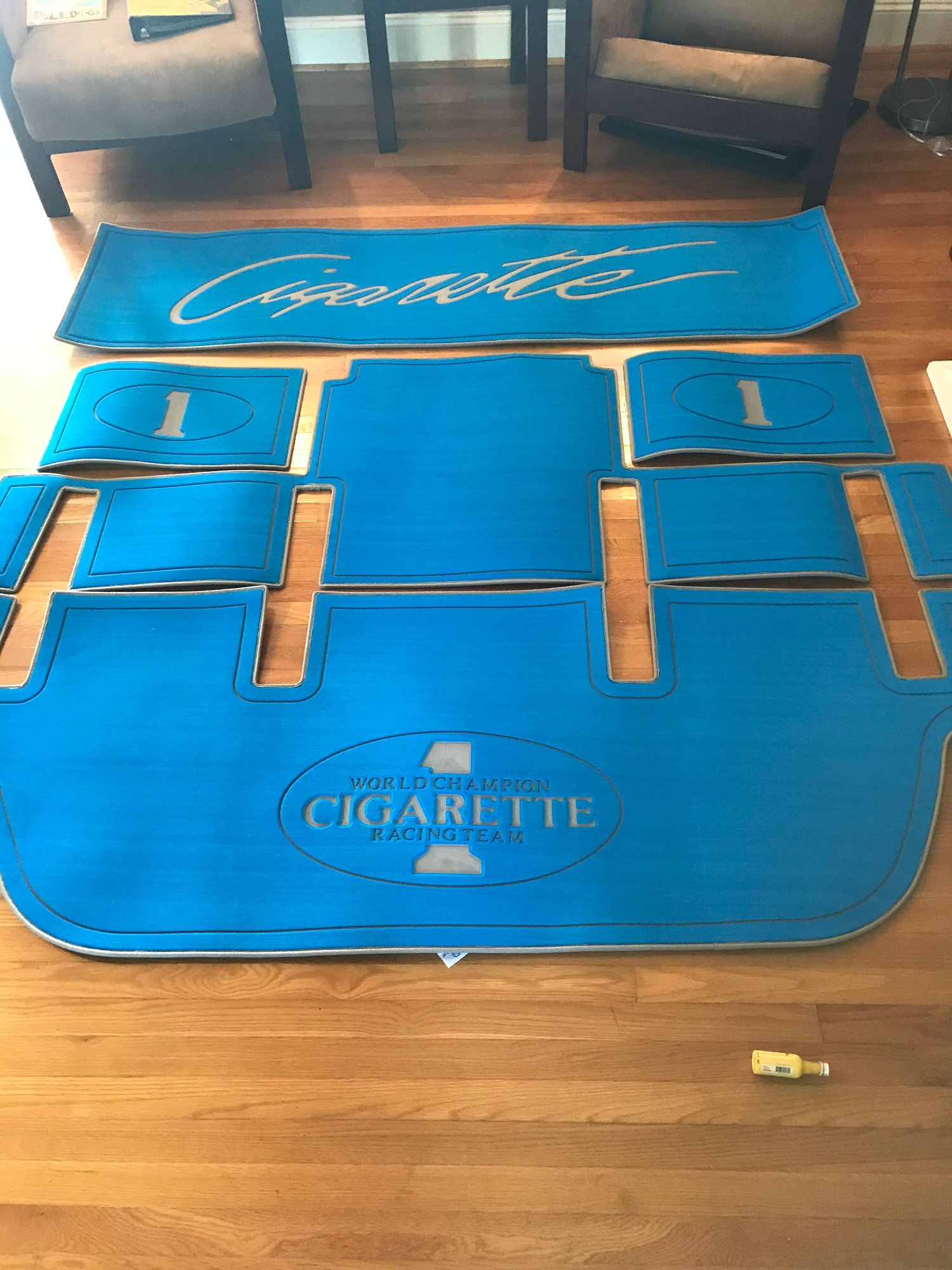 I have snaps on my foot rests, but I just laid the rest of the carpet in. Makes it really easy tp pull out and clean with simple green. I’ll dig out a pic.