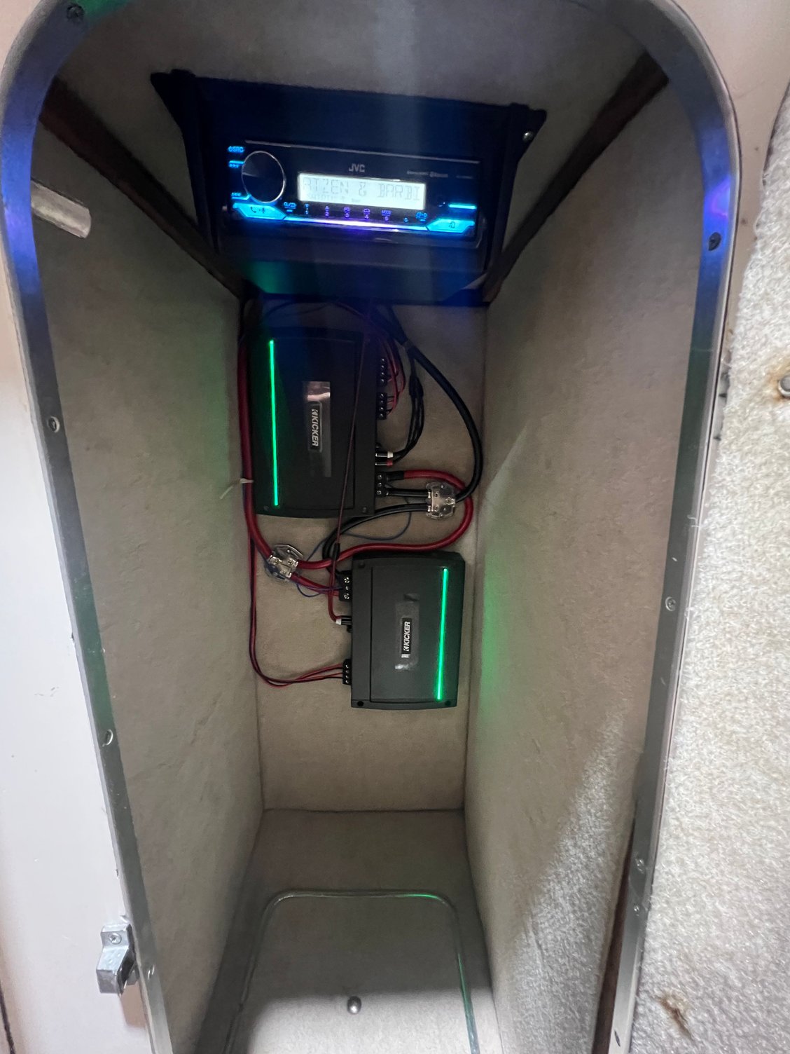 That’s all that counts. Mine is nothing special. I updated the head unit and outside speakers after we bought the boat, but that was only because the head unit that was in it had given up. I ended up upgrading the outside speakers because the old ones had a crackle to them. I went with Bazooka for those, as I was going with the bass tube. The speakers in the cuddy are “original”. It won’t blast out the cove, but that’s not my intentions. We can hear it when we’re in the water immediately around the boat. Works for me.