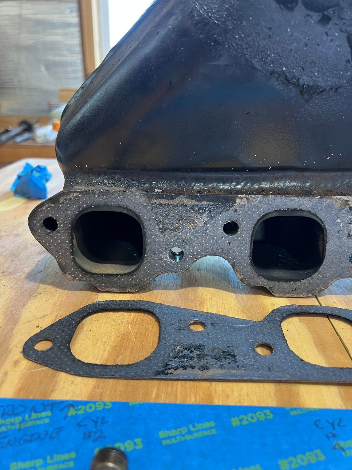 my guess is you lost cooling…and cooked the exhaust. as cast aluminum temperatures rise stress creep and cracking is most common failure mode.