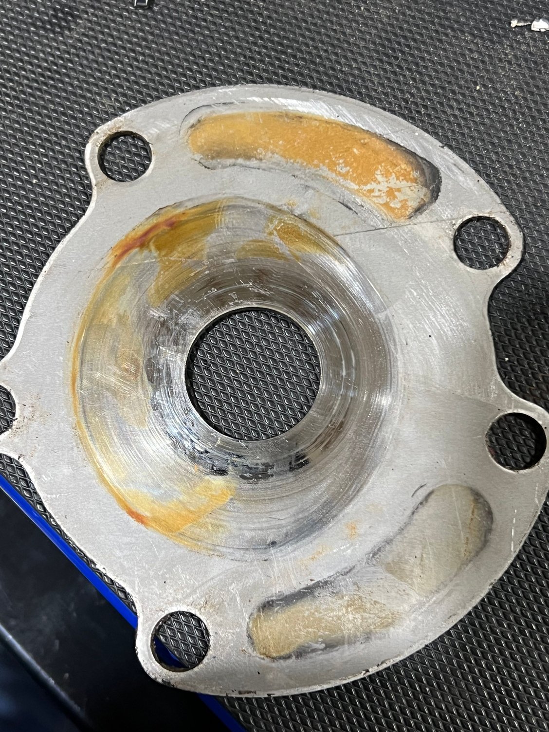 That impeller is smoked...you can see the black rubber bits on the center of the plate....doesn't take much for them to start sucking air and you get steam pockets in the water system....also kinda looks like the center of it is "stripped out" for lack of better terms. Was it actually spinning or was the shaft spinning inside the impeller? Could just be the pic but that impeller is def an issue to me anyway, not saying it caused the issue but it is one issue. Possibly was sucking enough air/cavitating in the housing and the water flashed to steam in the header and POP?? Just a thought....