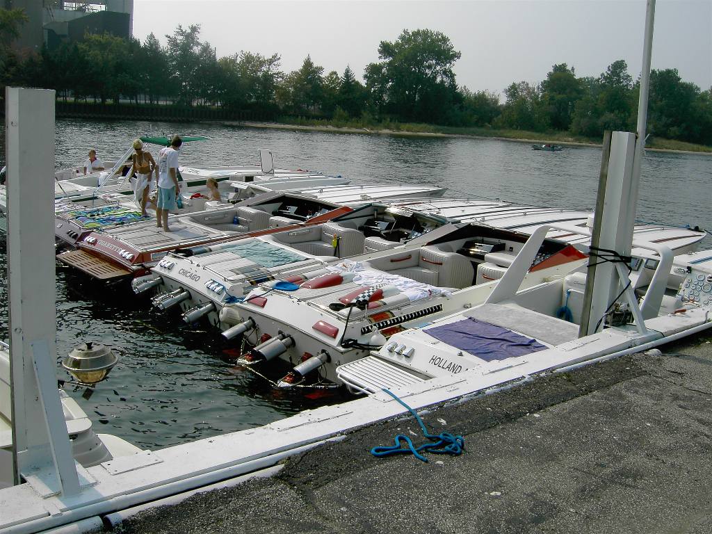 That picture was taken at Diversey Harbor in Chicago by Mr Cig or his wife during a COPS run to Michigan City, Indiana. We ended up having five 38 flat-deck boats on that run and they were all rafted together on the seawall there. You can find pics here or on the OPB website. I'll post one on this thread if I can find one.
