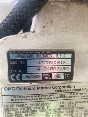 Well now I have the real story, went to look at the boat again with the owner. Long story short,the outboards were put on in 2001. They were installed on the boat using a custom Armstrong mounting box. This is actually the first time I was able to talk to him. I had been talking to his son. Both Johnsons were bought new in 2001. I've attached some pictures so now i can figure this mess out with the some help. I bought the boat. the starboard engine definately needs a power head. I believe these are E-tec;s. One of the pictures is of the Hull I.D. So I really have no idea what was originally on the boat for power.