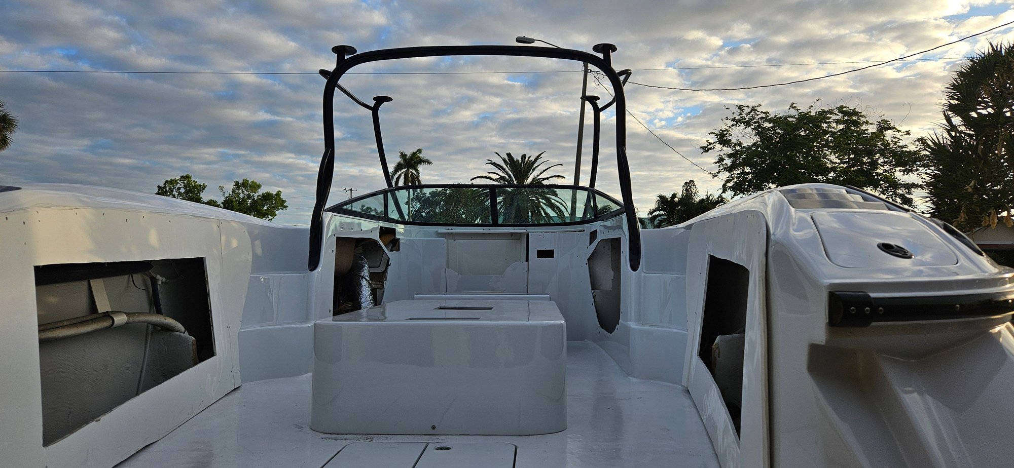 The Swim platform was a bolt on section. The large holes in the side are a result of cutting out the rear seat and engine hatch area. If you look in other pictures I made Mockup Starboard covers for each side. This concept will be used when we create the new side panels that will be covered in vinyl and have cup holders, speakers, access to batteries and battery switches, ect.
