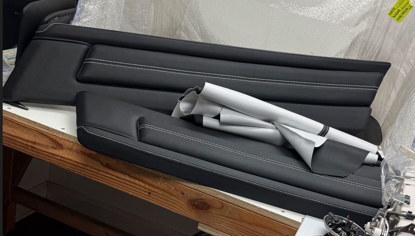 I wish! There is a long delay at the Interior shop. They scheduled too many jobs at one time and had a few people leave the company. They finally started working on this right before the 4th of July. The dash is complete, the side panels show the colors/ stitching, and the side panels are next. I have been told it should be done by Mid August.