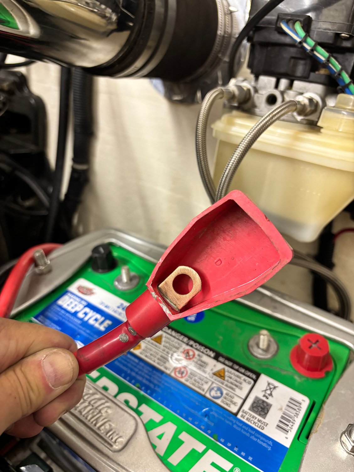 Finally decided to remove the battery cables. On the 4th and last one I found this.