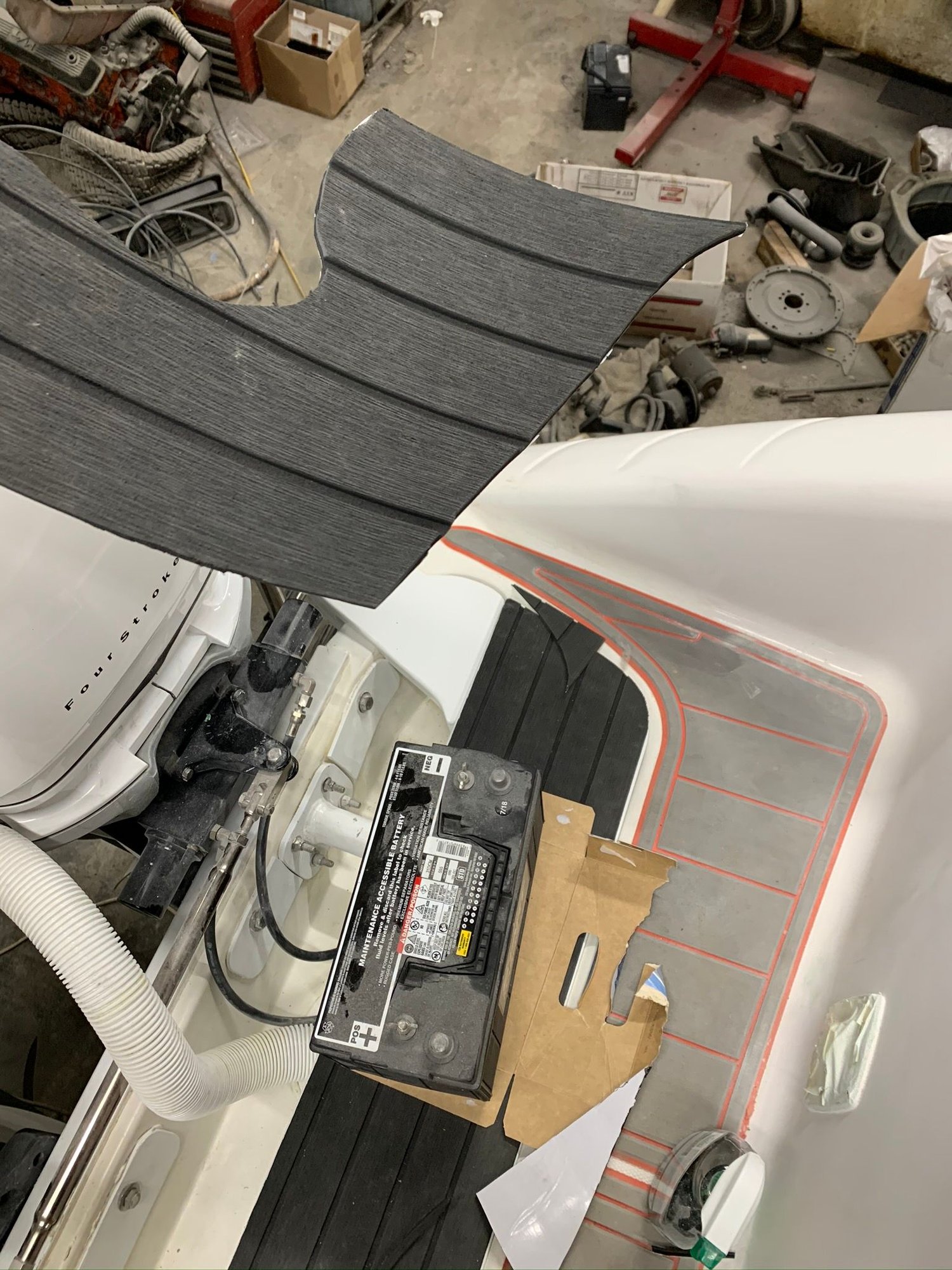 Adding foam decking to the top. This will get replaced with sea deck at some point but it was stuff we had laying around.