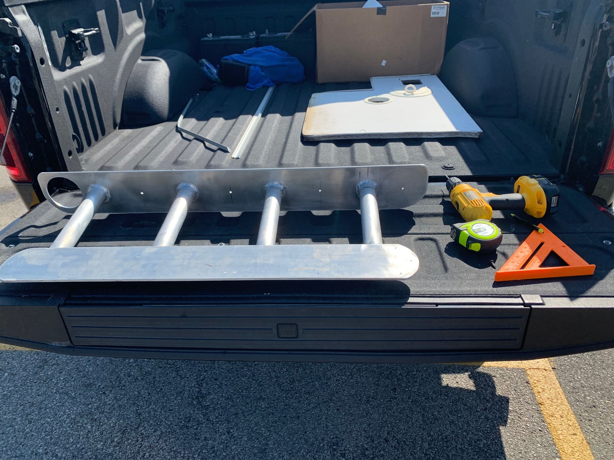 Showed up a little early to the hardware store so I set up shop in the parking lot and measured and drilled a few holes while I waited.