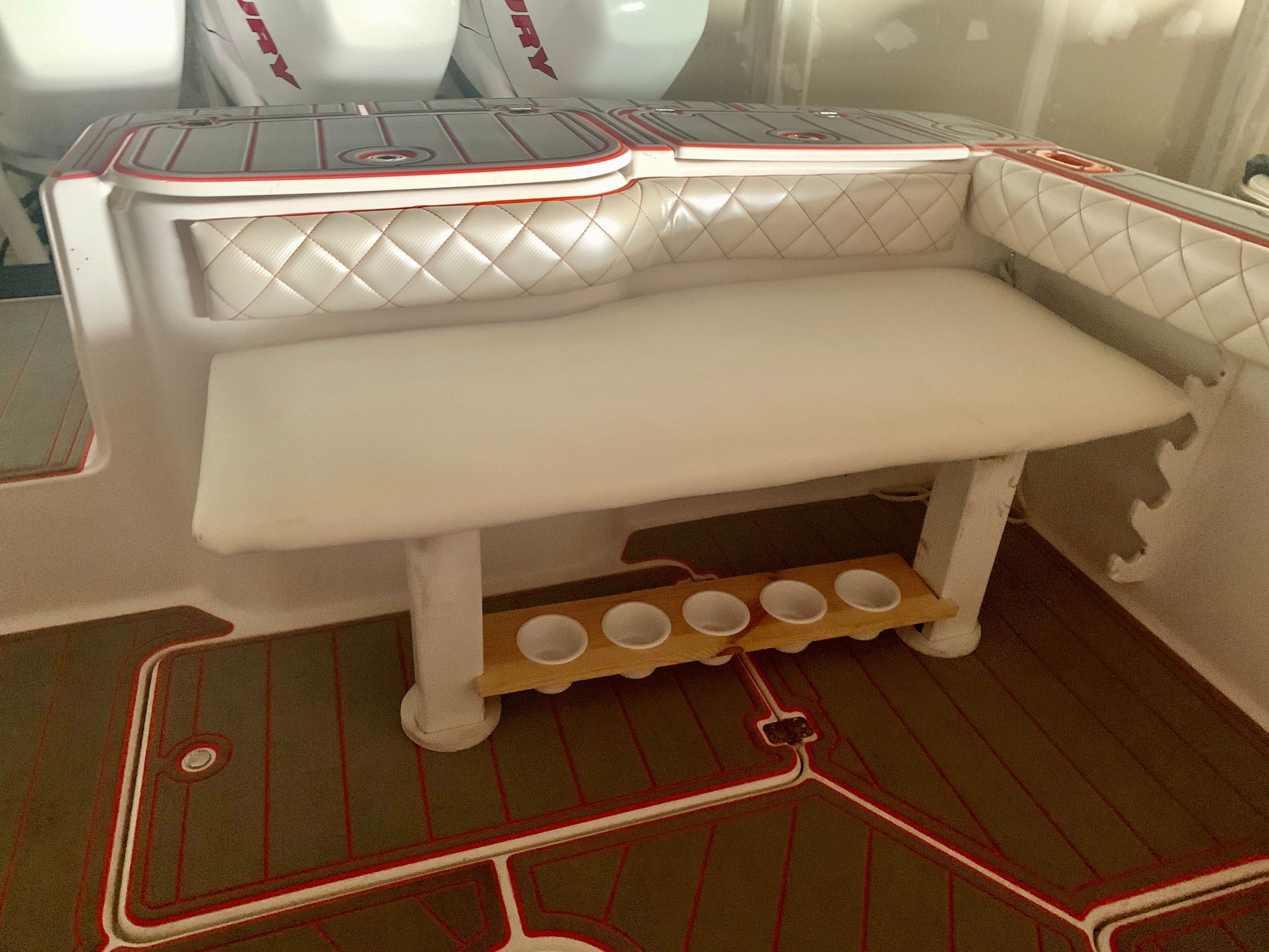 I guess we’re a little crazy for tearing into a boat we barely had driven but it’s nice to know your boat inside and out. My only wish is that we had found a boat in November so we didn’t miss most of the summer. Regarding the cowlings as Jeff said they will get changed soon but at this point we just want to go boating so it can wait. One thing that couldn’t wait is where to put your beverage. There wasn’t a single cupholder in this boat so we had to add a few. (10 to be exact)
