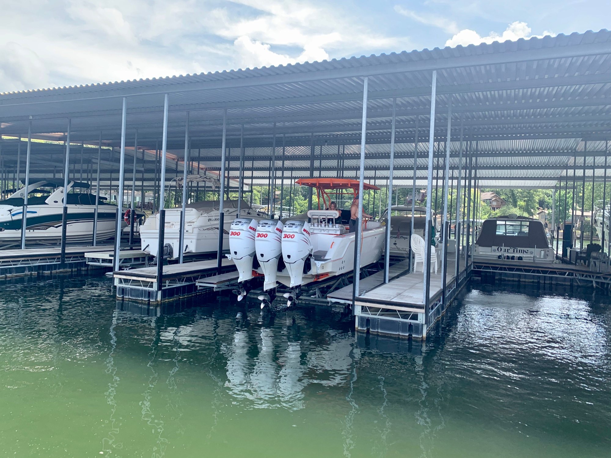Thanks guys, we had a blast last week during the LOTO shootout. Coming from a Baja 25 Outlaw to this is incredible it handles the slop with ease. She ran great all week until we got to the start line and the hi-pressure fuel pump in the port motor decided to give out. Kinda a bummer but when you have 3 engines it only slows you down a bit. We trimmed her up and ran the rest of the weekend on 2. Takes a little more to dock but not a problem at all. I actually think with a light load we might even be able to get her on plane with just the center engine alone!!