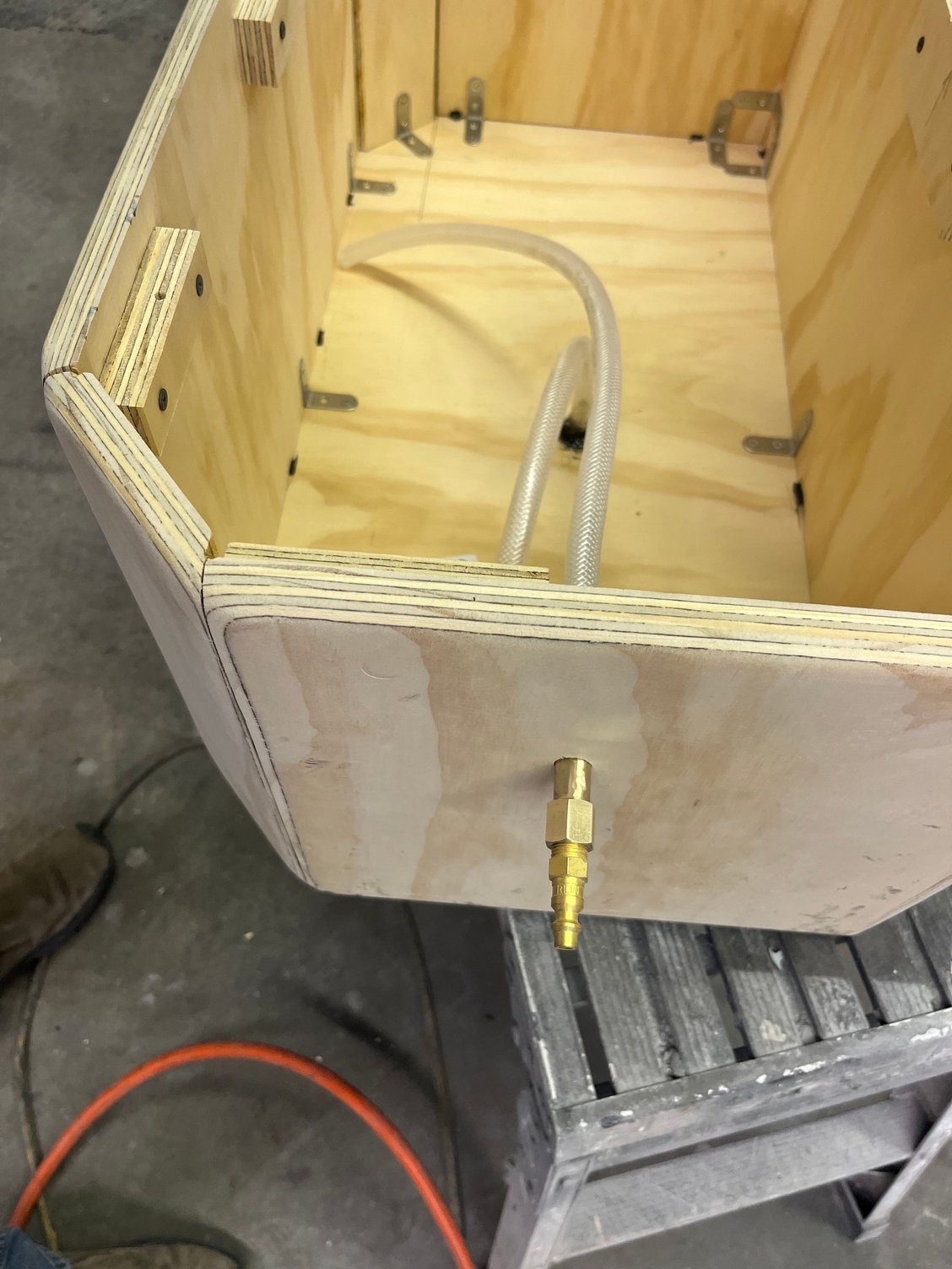 some additional photos of the air lines I installed to aid in part removal. The attached fitting is only used to assist with the plug covers when removing if required. The holes will be taped over when laying up the tank, not the covers which will be a separate layup. Since this is my first endeavor of this scope I wanted to give myself the best chance of having minimal problems. I don’t know what the cost would be if I had someone make them for me.