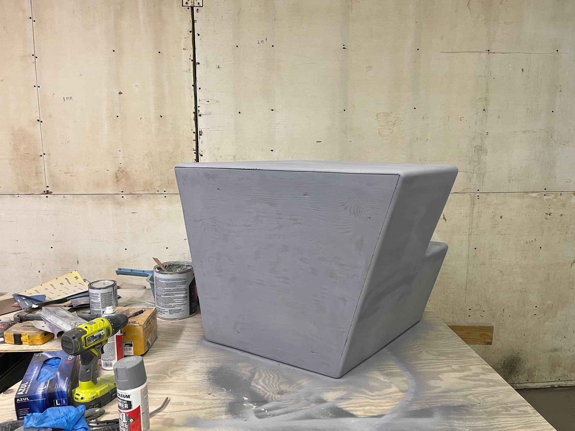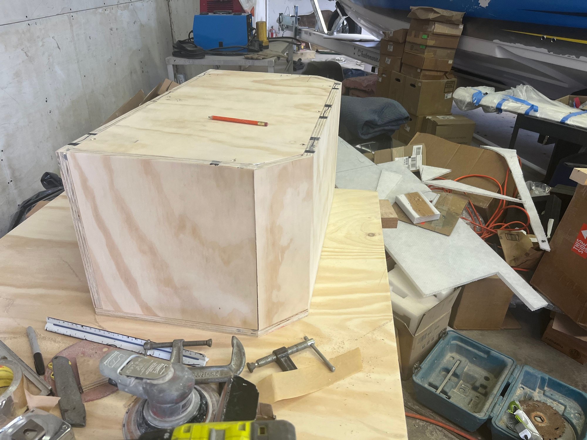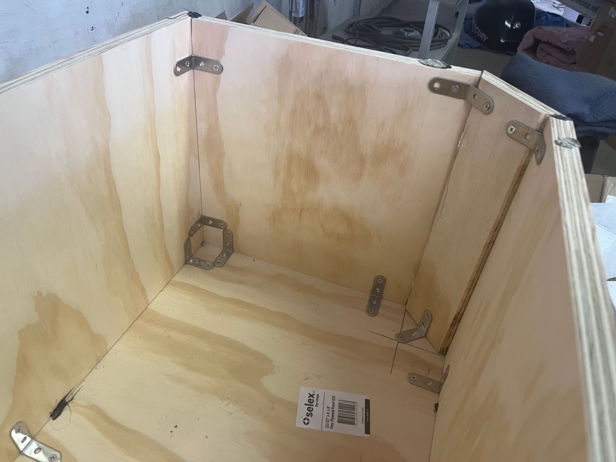 By now I was sick of Nidacore and bondo so I used some 3/4” plywood for the cooler plug. I had some angle brackets kicking around so I used them so I could knock down the plug from the inside if needed.