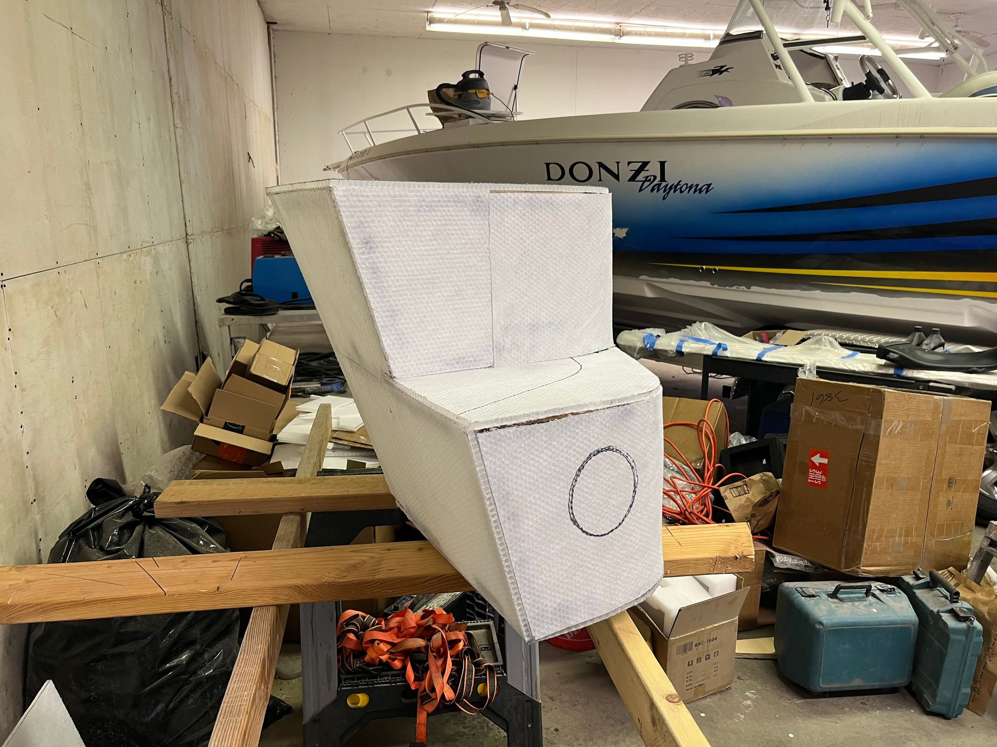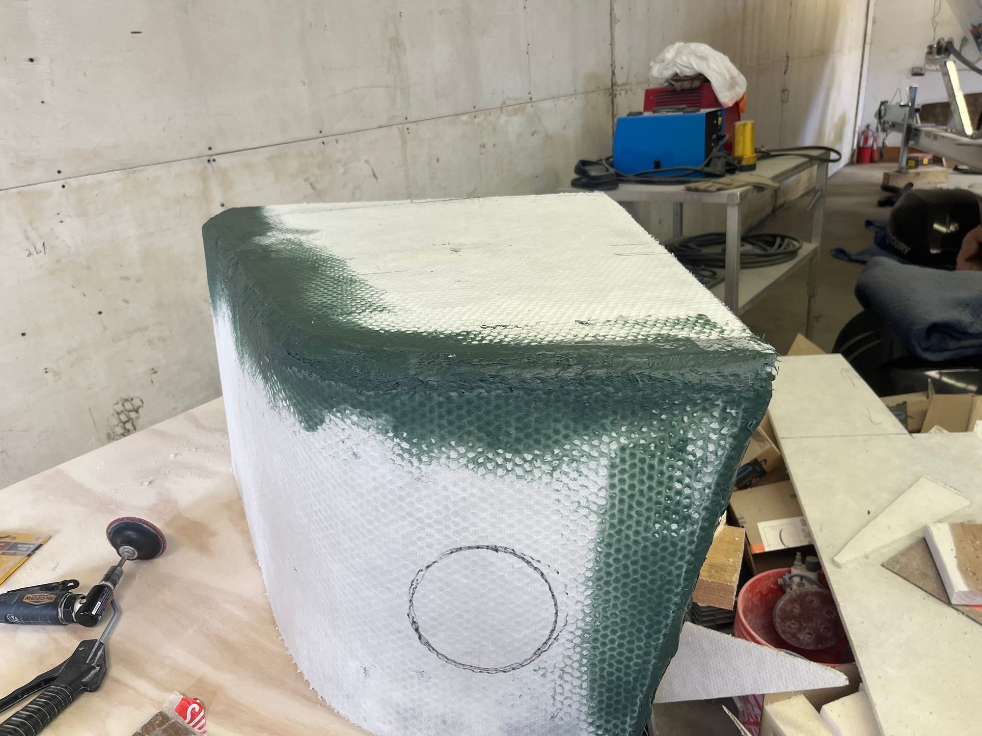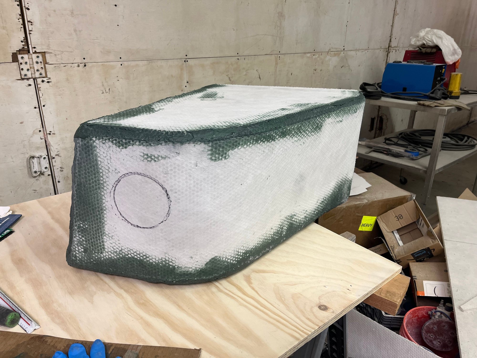 The plug was formed using pieces of Nidacore hot glued to themselves with wood blocks, obviously, and not the furred out pieces. It was cross braced for stability.