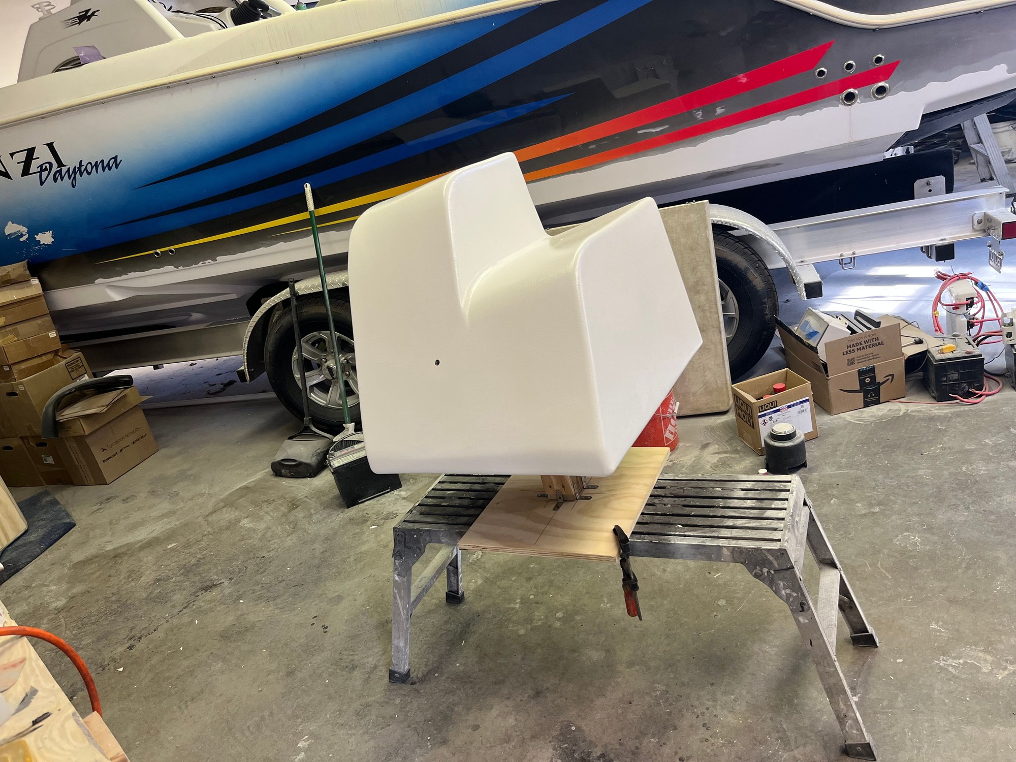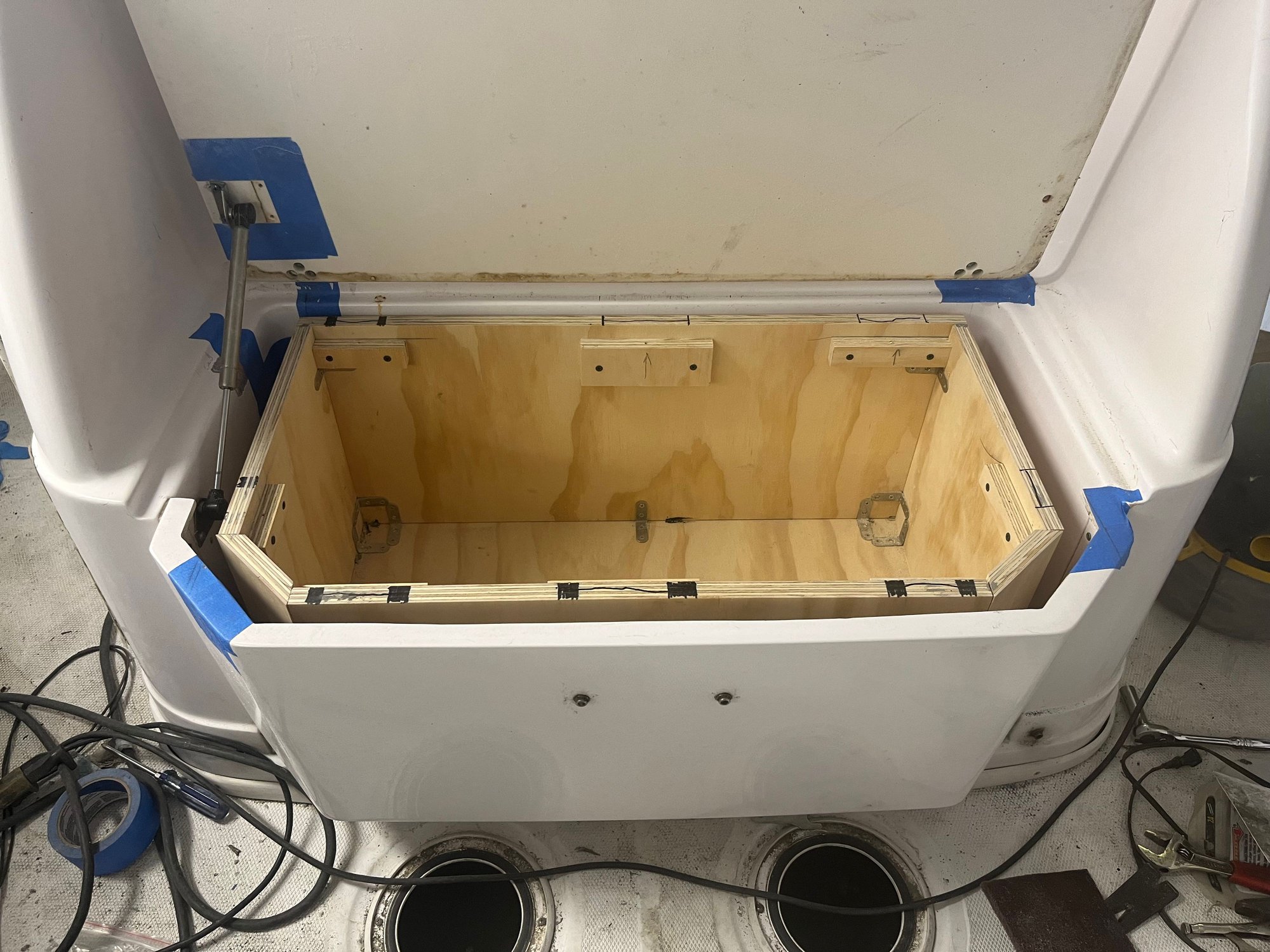 The step and seat areas were hollow and accessible by removing interior cuddy trim panels.