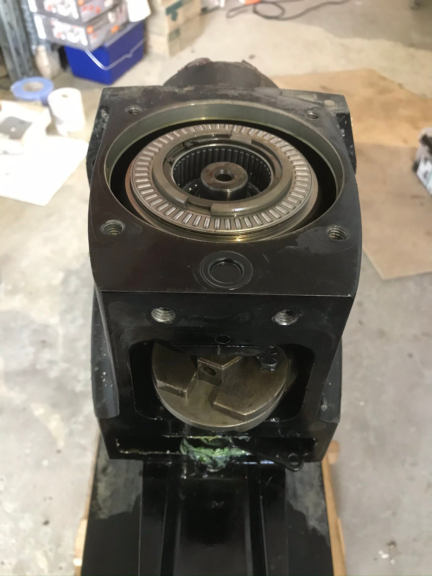 a couple of othe things of note, the shift fork goes in with the nuts facing down and the gears have to be timed, there’s + and - on each eccentric ring on the gear, rotate the gears so the marks are at the centerline of the shift shaft bore in the case, match up - and + or visa versa, just don’t align the same 2 marks, then you install the pinion gear back in the case