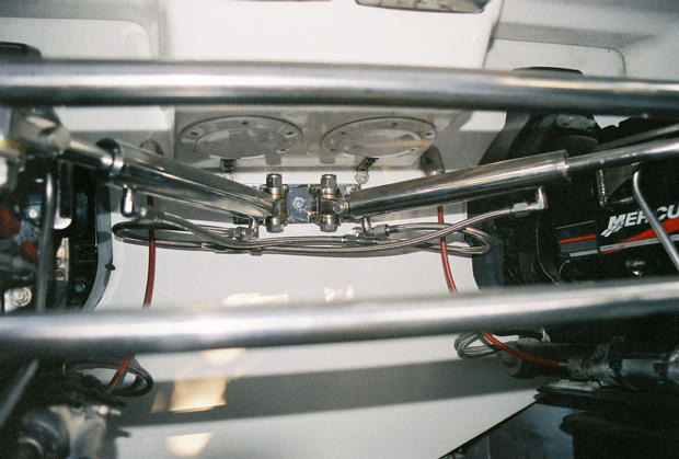 The motors dynoed at 525 and 522hp. The XS Marine steering is installed, the new dash and Livorsi gauges are almost finished and the second motor will be fully rigged by Saturday. I also removed the k-planes and powdercoated them black. What a bioche to remove!