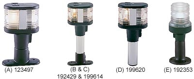Yours should be the 2 lights in 1. More than likely 'D' in the above pic. The socket in your boat will be a 3 pin plug: forward facing light lead, rearward facing light lead, common ground.