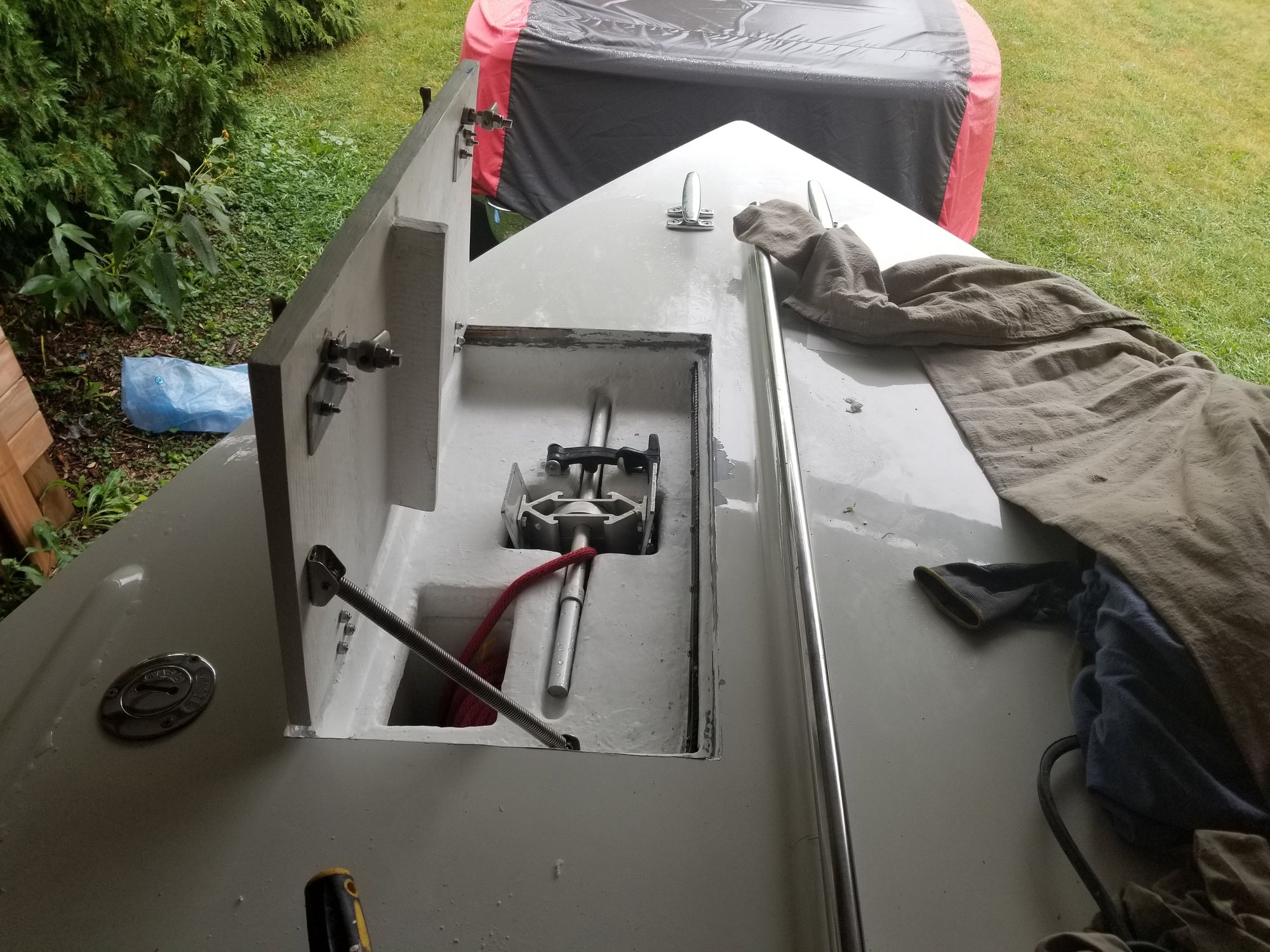 I have a custom aluminum ladder on the port side just forward of the passenger seat. On the port side of the boat about 3' behind the windshield I have a stainless steel step pad fastened to the topsides just above the rub rail and below the side glass. I am able to step over the side glass onto the step...turn and step to the bow and walk to the bow cleat and fasten the anchor line. I have a knot at that point along the anchor line that I attach a "retrieval" line. I keep the retrieval line attached to the spring cleat on the starboard side so I can reach it and handle it from the helm.