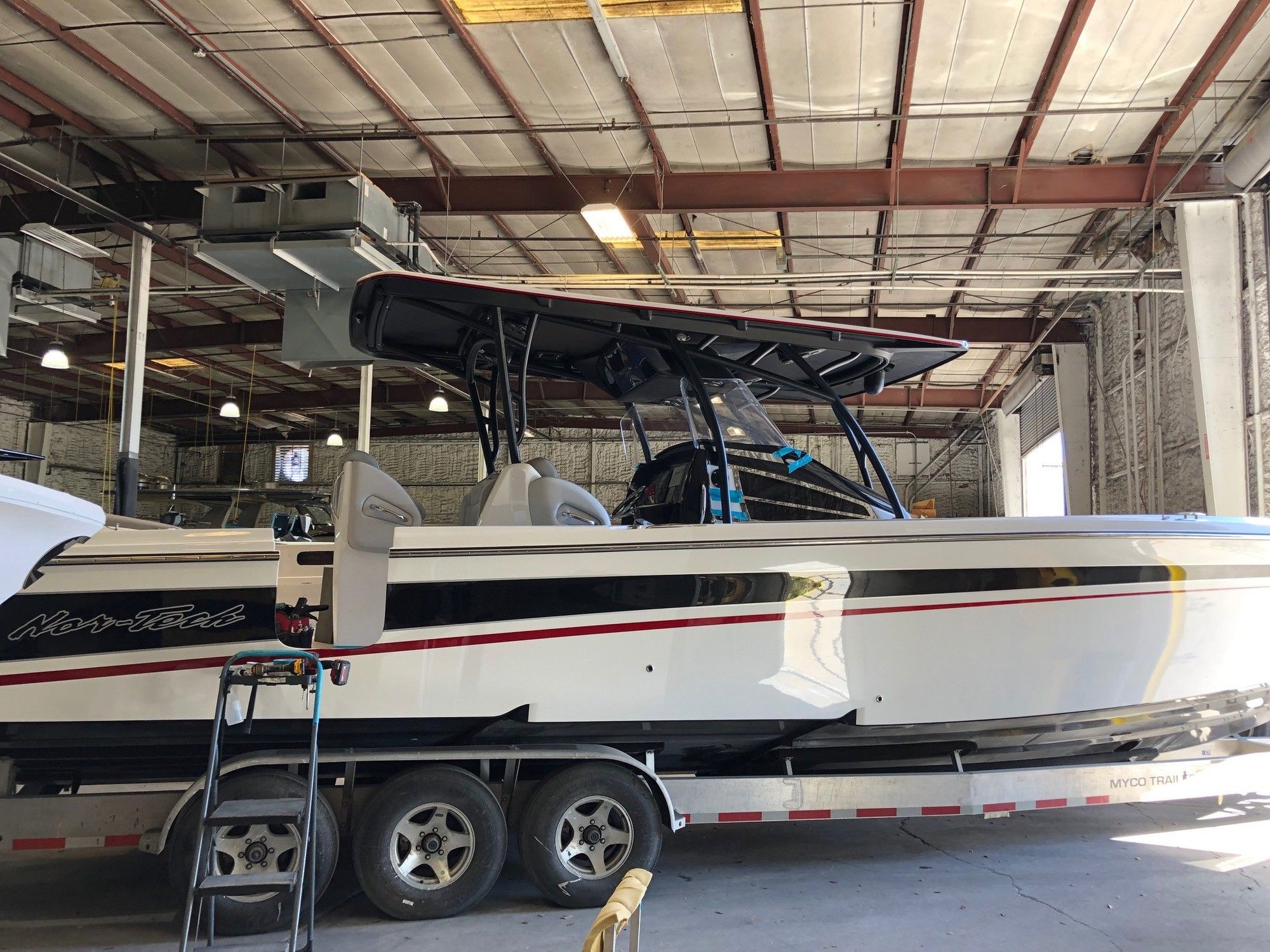 Thank you John & Conrad Kray of Sportboats Marine for the progress pics following your Nor-Tech Factory visit today.A special thanks to Kevin Lane who came up w/ the scheme & Paul Diogo the artist who turns artists renditions into reality.