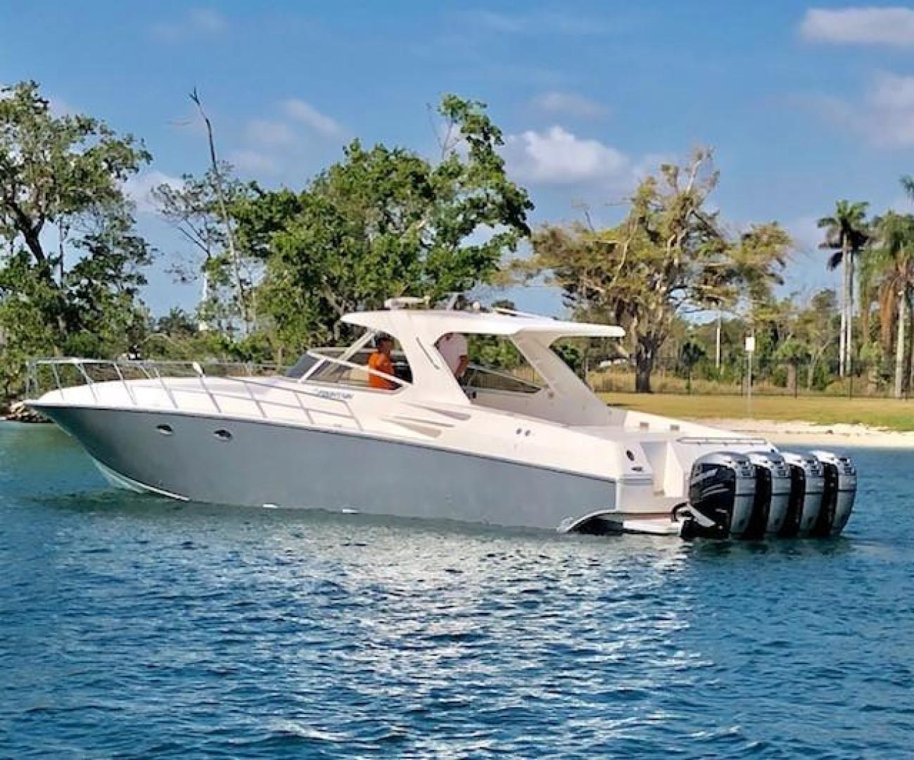 The 42 Fountain above is owned by a good friend of mine, re powered with 3 350's. Last weekend he ran buy us in our CC like we were standing still. Boat was on rails. Awesome set up! Runs upper 80's now, with more setup will run over 90.