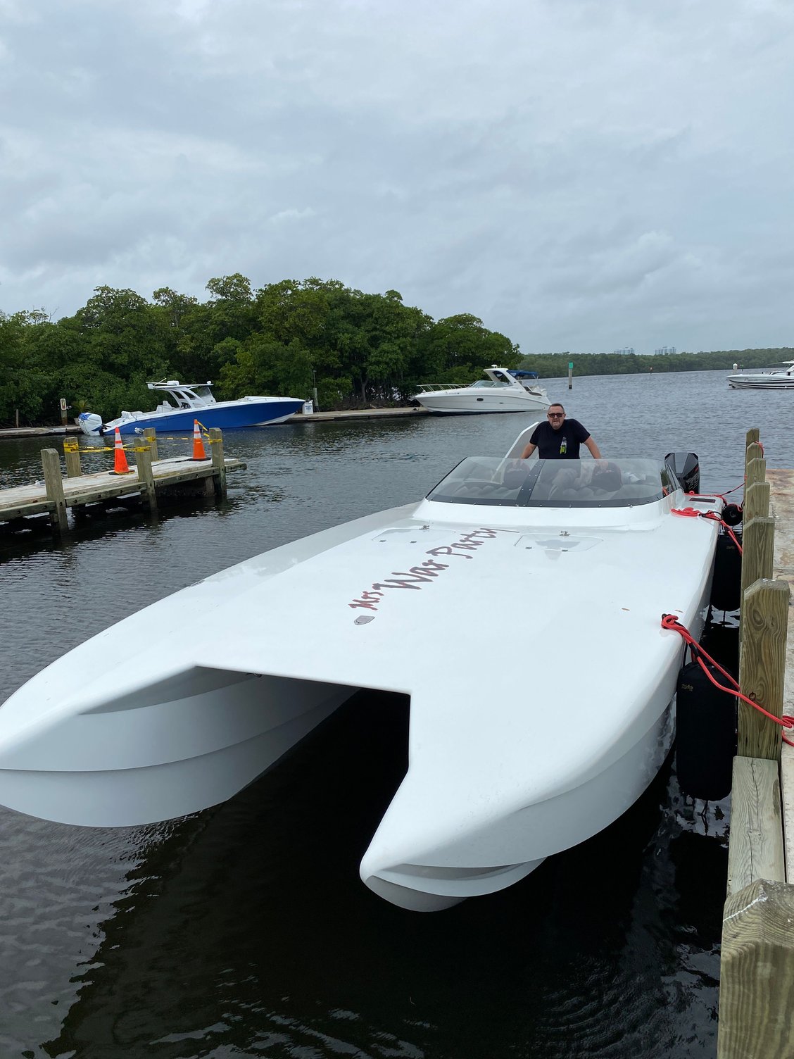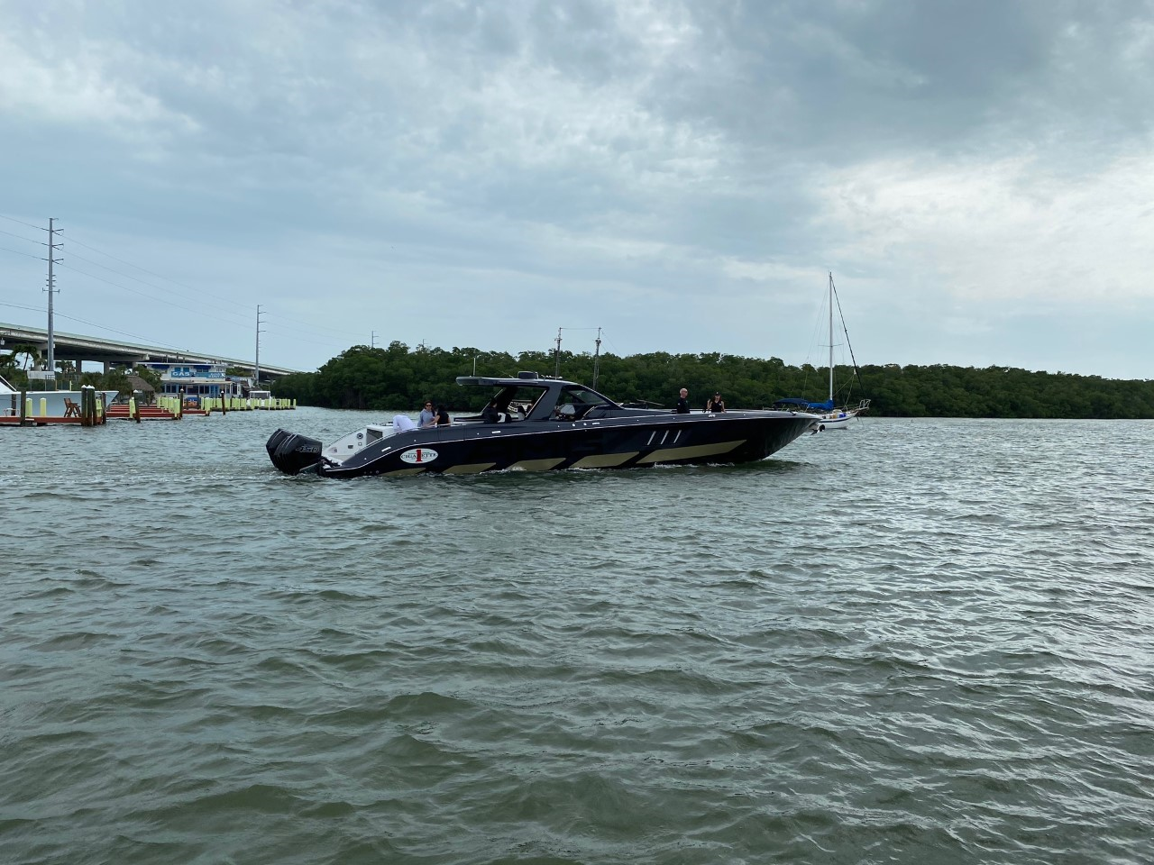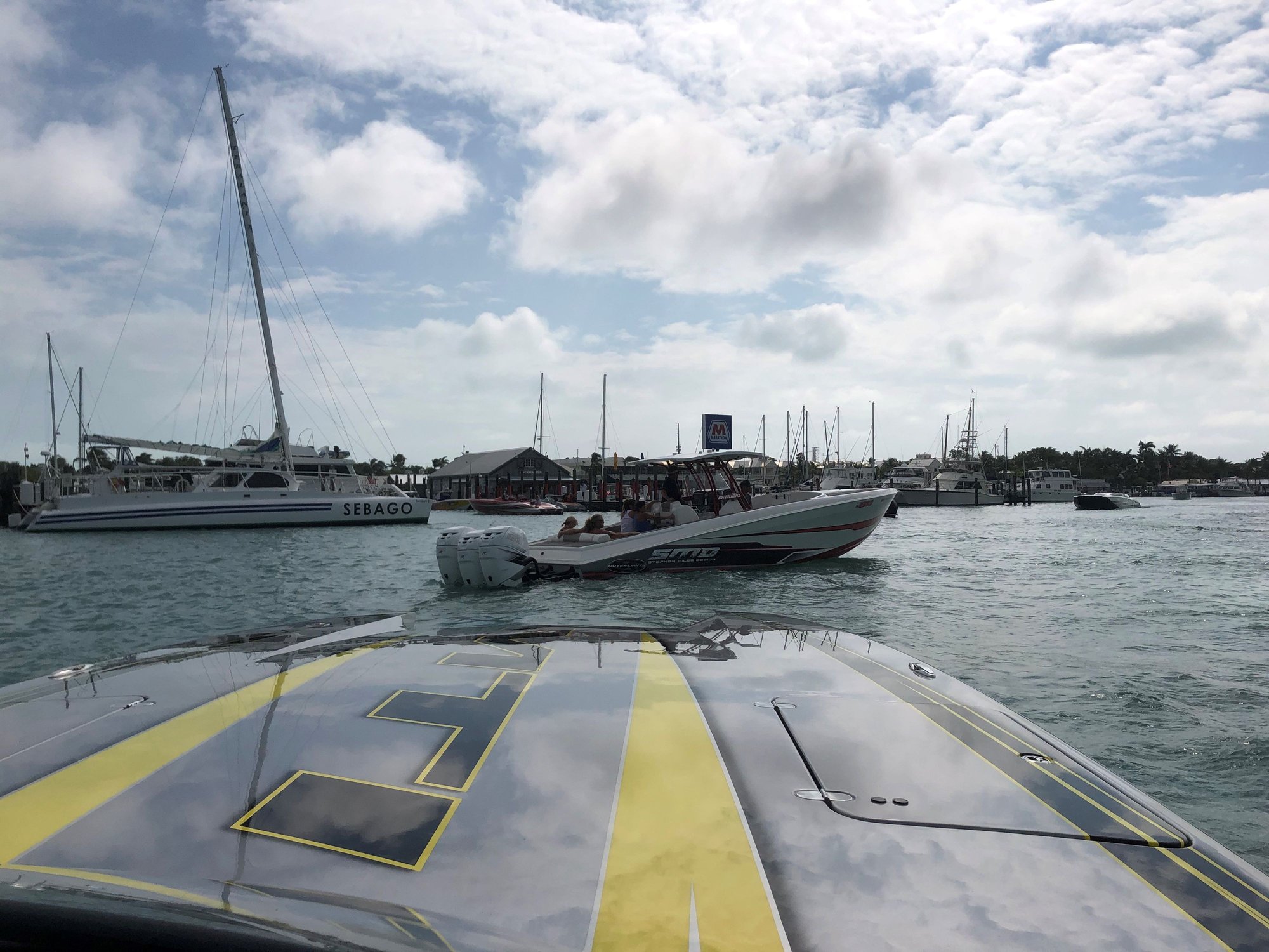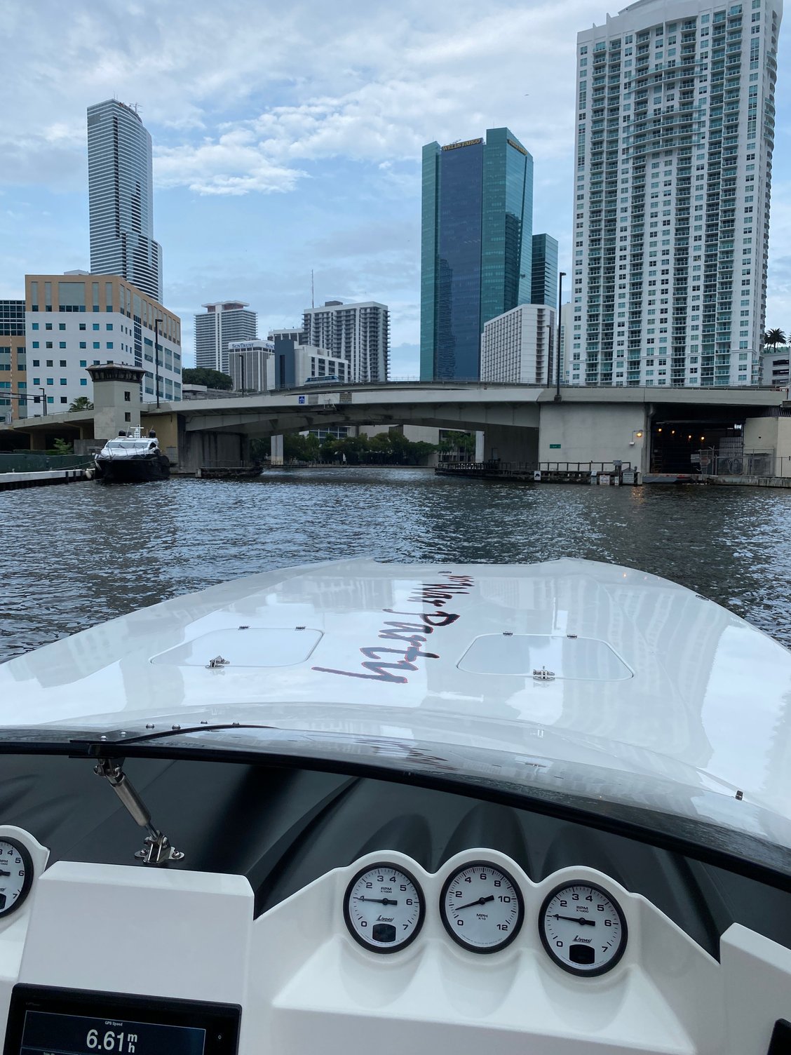 Water at Haulover ramp is a little high. Glad Brad already had the boat in the water. Had a nice lunch in the Miami river. A big thanks to Brad, Troy, and Steve for making this happen. We are doing the poker run tomorrow. Looks like the weather will lay down a little and be a good run.
