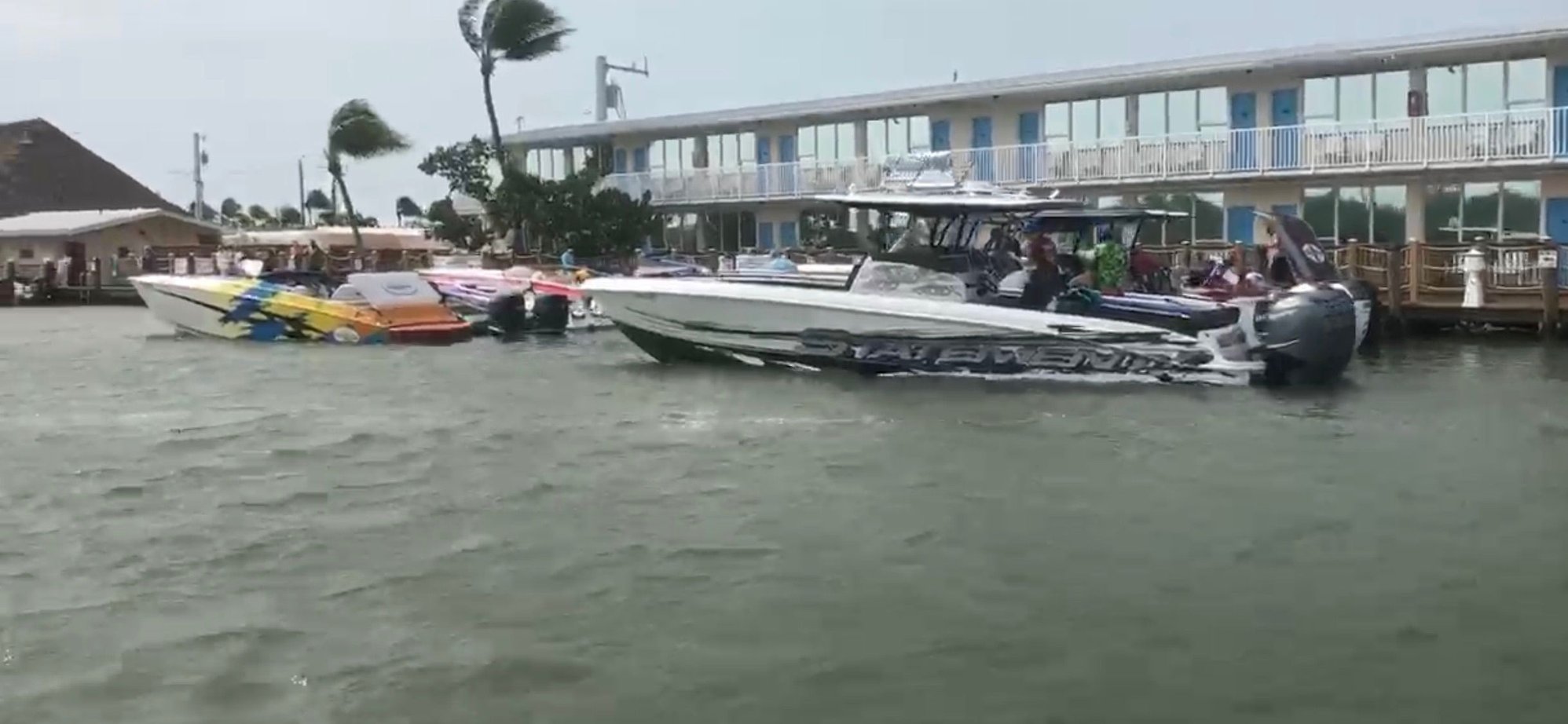 Look at the palm trees at Gilberts, they are blowing hard! That must have been a sh!t show docking in that wind. Nice day for a 450 NT or 59 Tiranna with 20K lbs+ and a windshield! Open boats/small cats not so much! It might make for some good pics if the chopper could fly today, hope it was a safe ride for all.