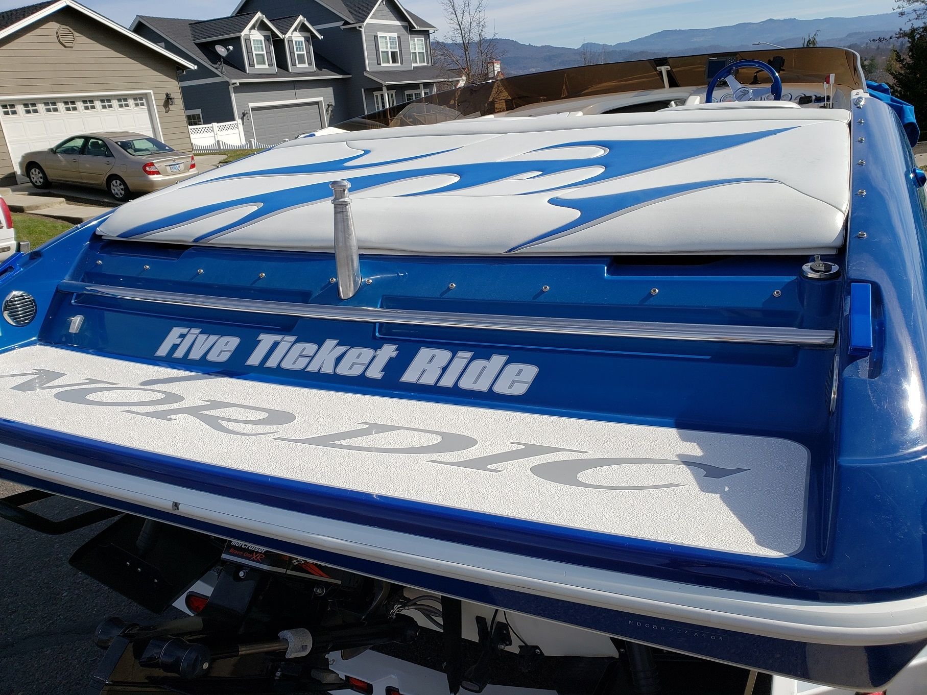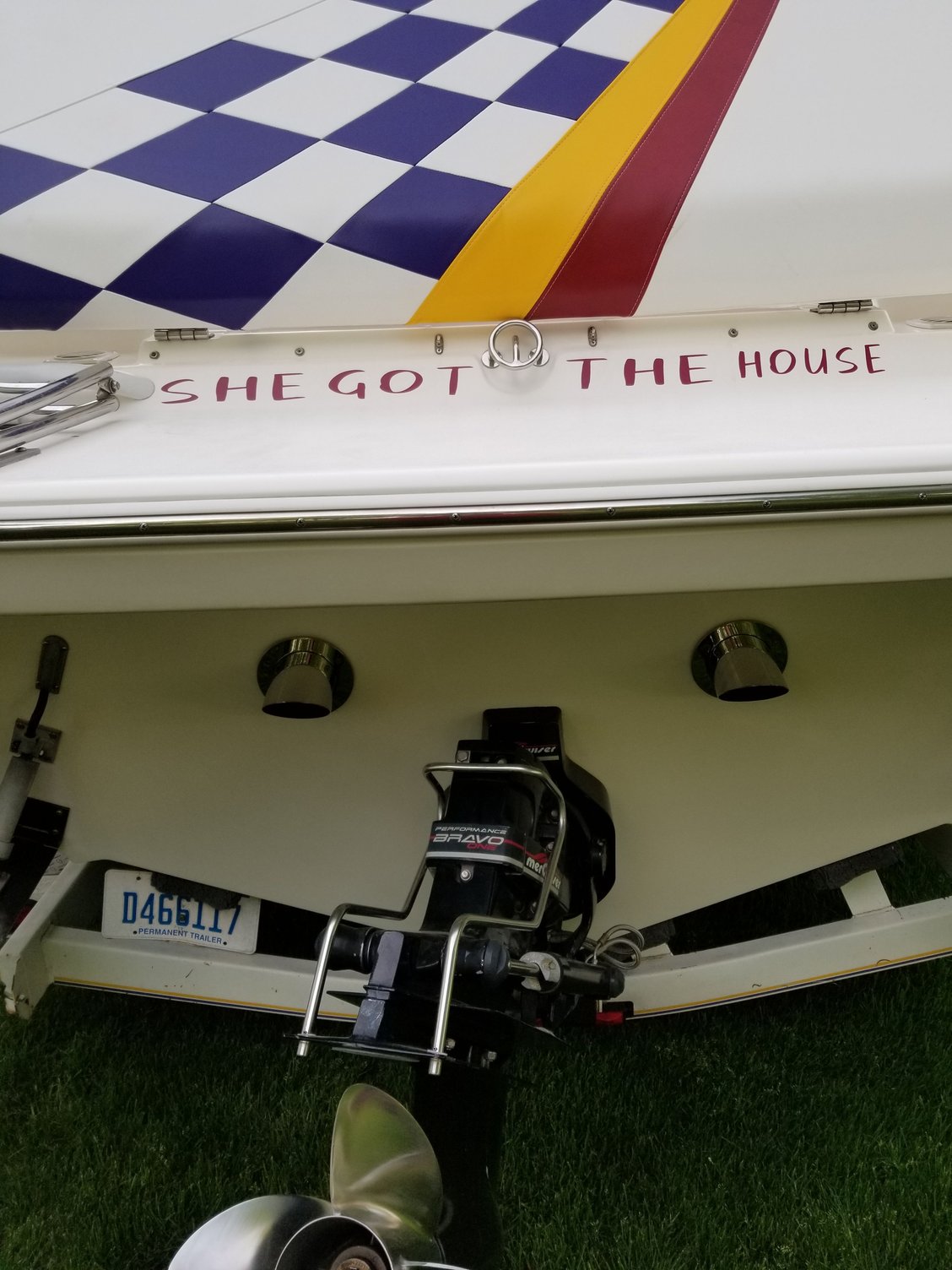 Bought it and changed the name to what I had on my 32' Fountain that I sold to buy it. Name is Haulin' Aft, my wife's name is Afton. I plan to keep the 39' NT Supervee forever and just keep updating it. If I were to sell, I would take the name with me.