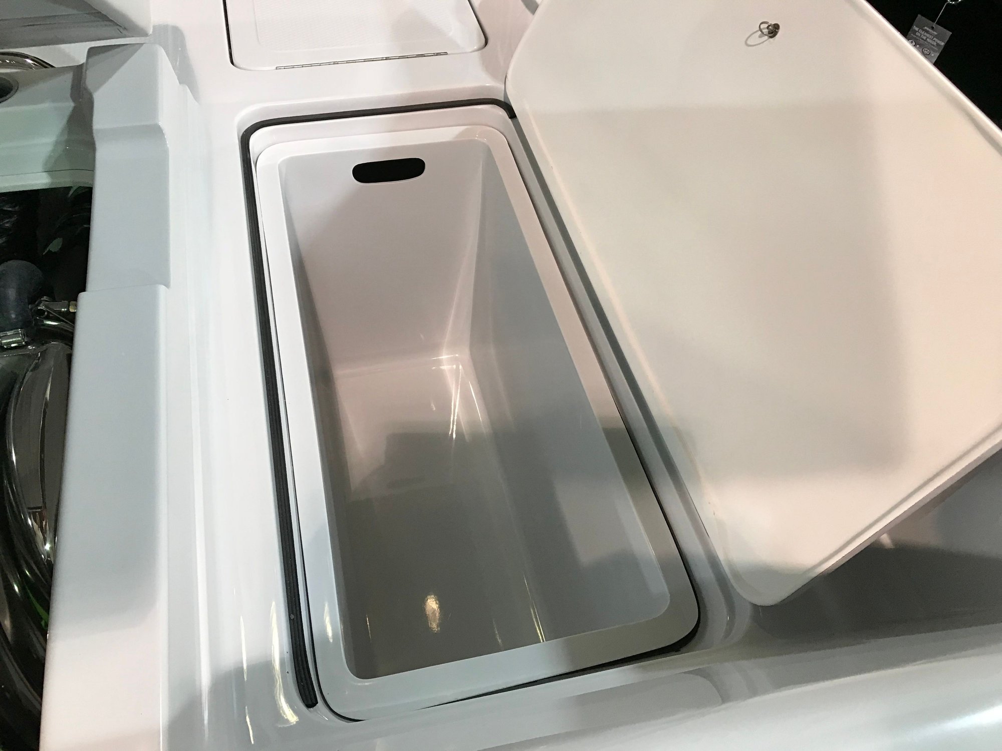 Regarding port-side access, the rear walkway has an insert for holding bumpers accessed via a hatch. Take that liner out and climb down and you have easy access to the batteries and the port side of the engine. It is a really well thought out boat with a ton of storage room.