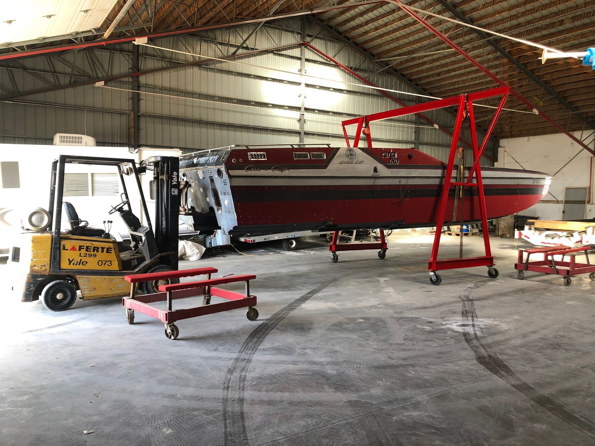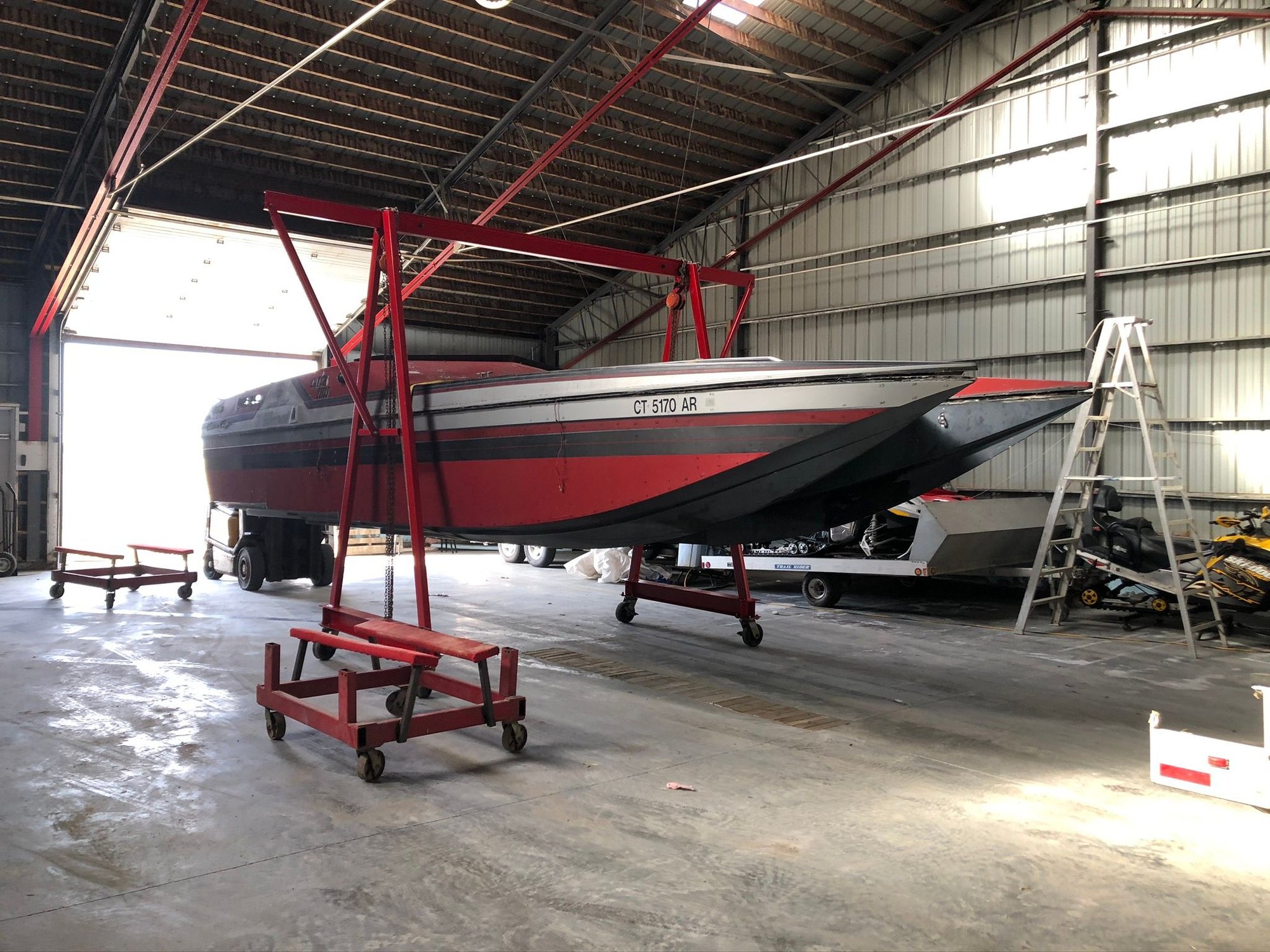 I'm so glad i have a forklift -- so much handier than a gantry... if you look you can probably find a running forklift for $2500 and be able to use for other things also... but it does take up a bit of space.