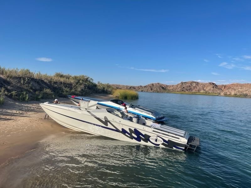 Is that boat too big for Havasu? Hassle to beach (as in others jump off into 3 ft of water but you are 30 feet out into the channel/deeper water)? I think Mark and Eileen's 50 with triple 1000s ended up out there also.